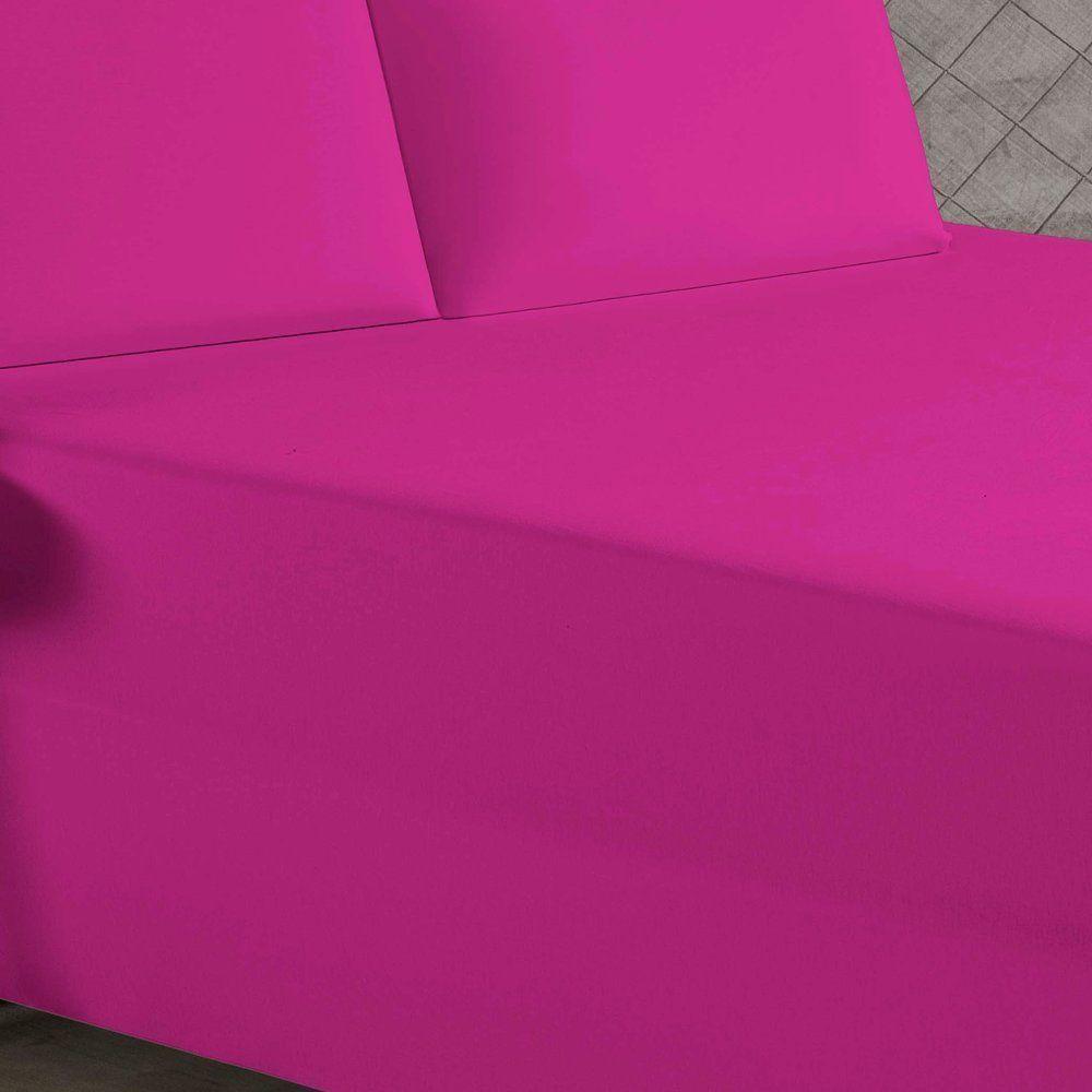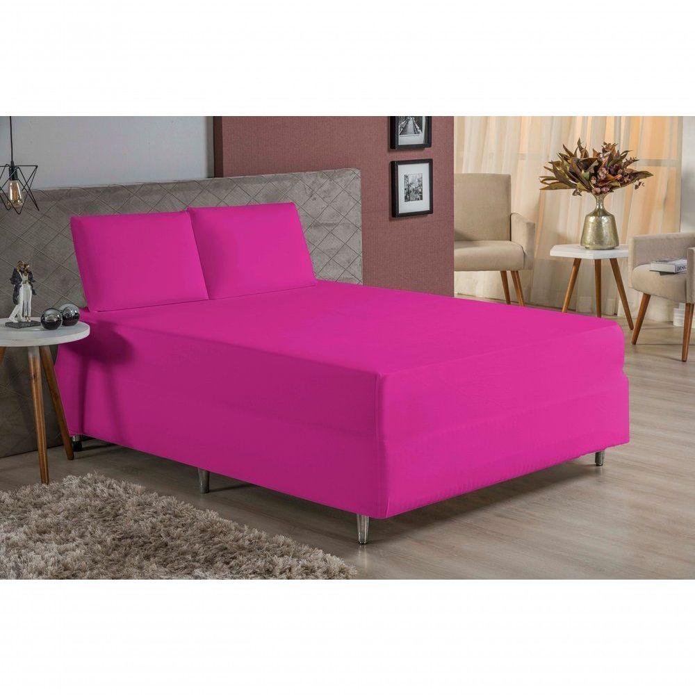 Jogo De Cama Casal Nobre 3 Peças Luva De Box 55cm De Altura Malha 100% Algodão - Pink