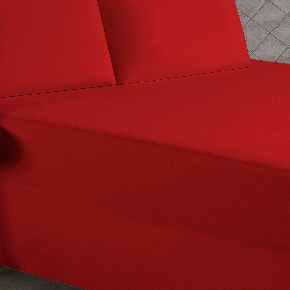Jogo De Cama Casal Nobre 3 Peças Luva De Box 55cm De Altura Malha 100% Algodão - Vermelho