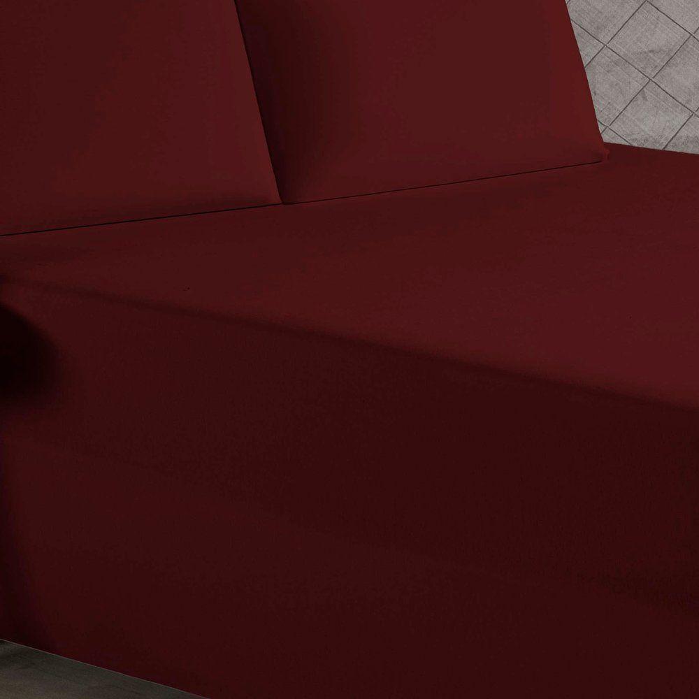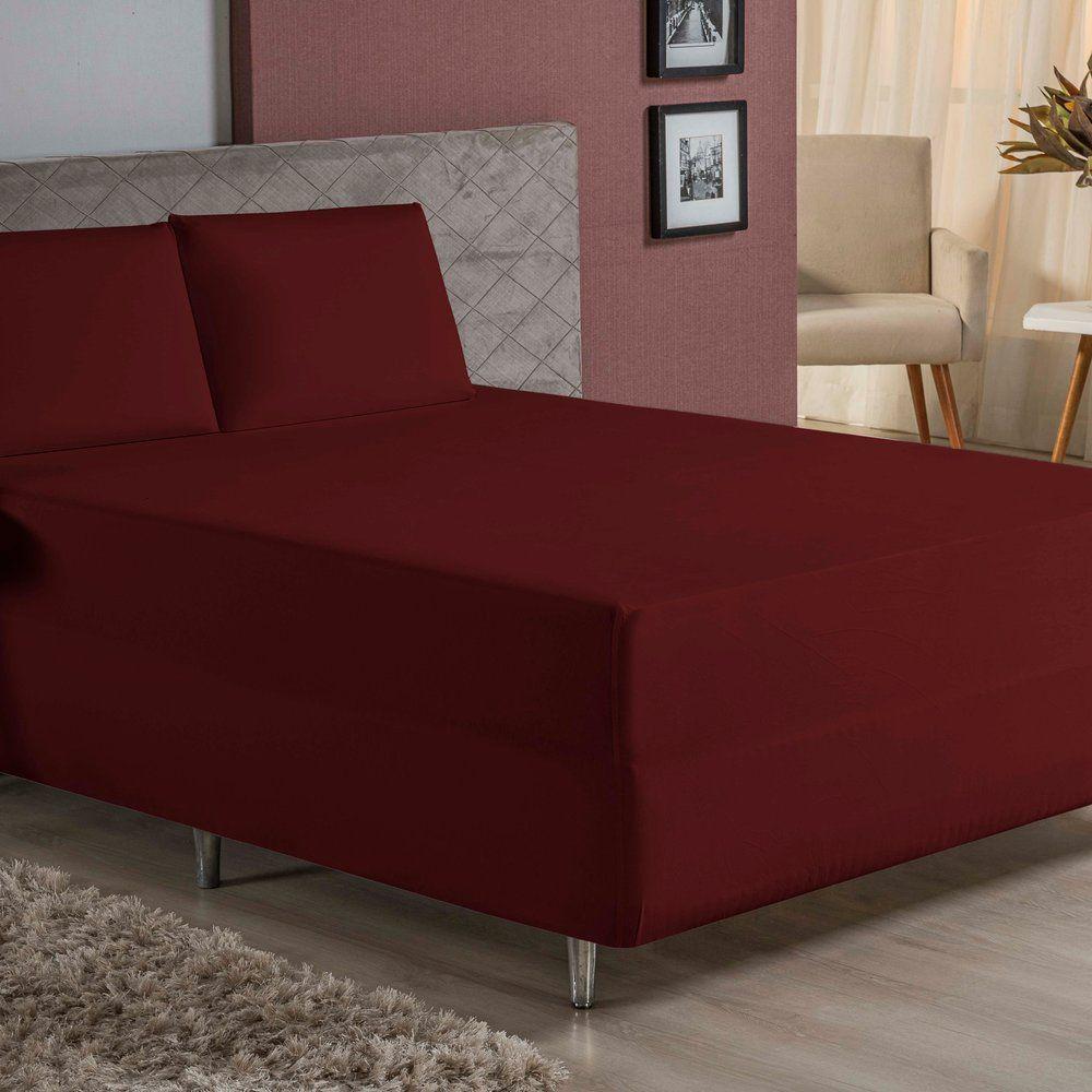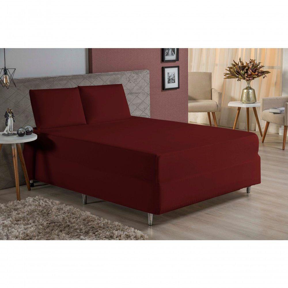 Jogo De Cama Casal Nobre 3 Peças Luva De Box 55cm De Altura Malha 100% Algodão - Vinho
