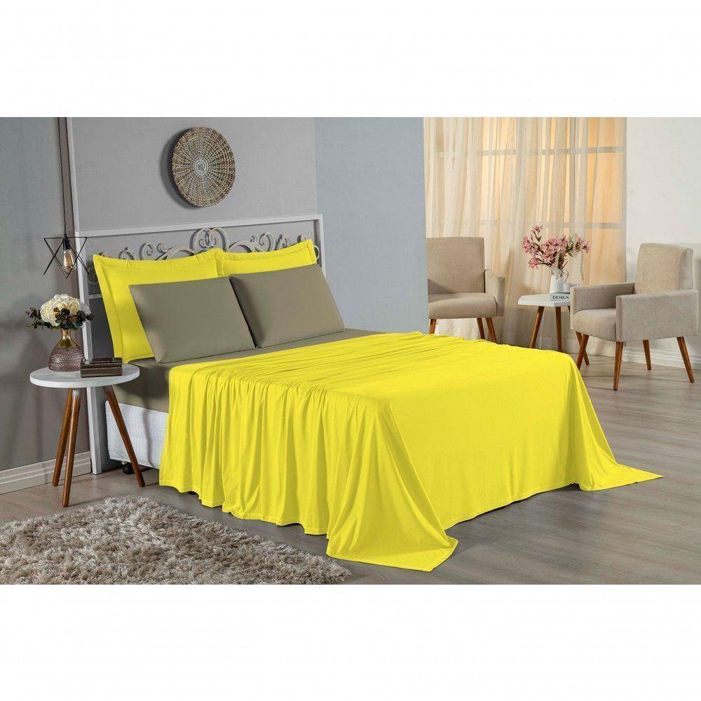 Jogo De Cama Casal Nobre 4 Peças Lençol Com Elástico De 30cm De Altura Malha 100% Algodão - Amarelo / Avelã