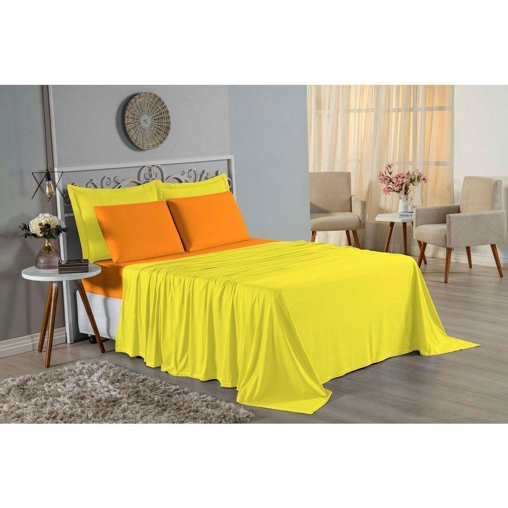 Jogo De Cama Casal Nobre 4 Peças Lençol Com Elástico De 30cm De Altura Malha 100% Algodão - Amarelo / Laranja