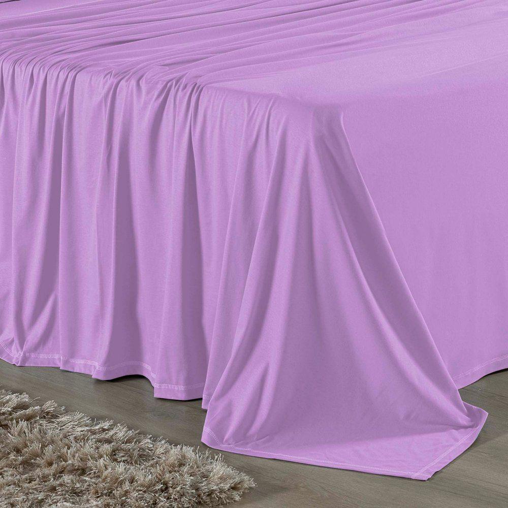 Jogo De Cama Casal Nobre 4 Peças Lençol Com Elástico De 30cm De Altura Malha 100% Algodão - Lilás