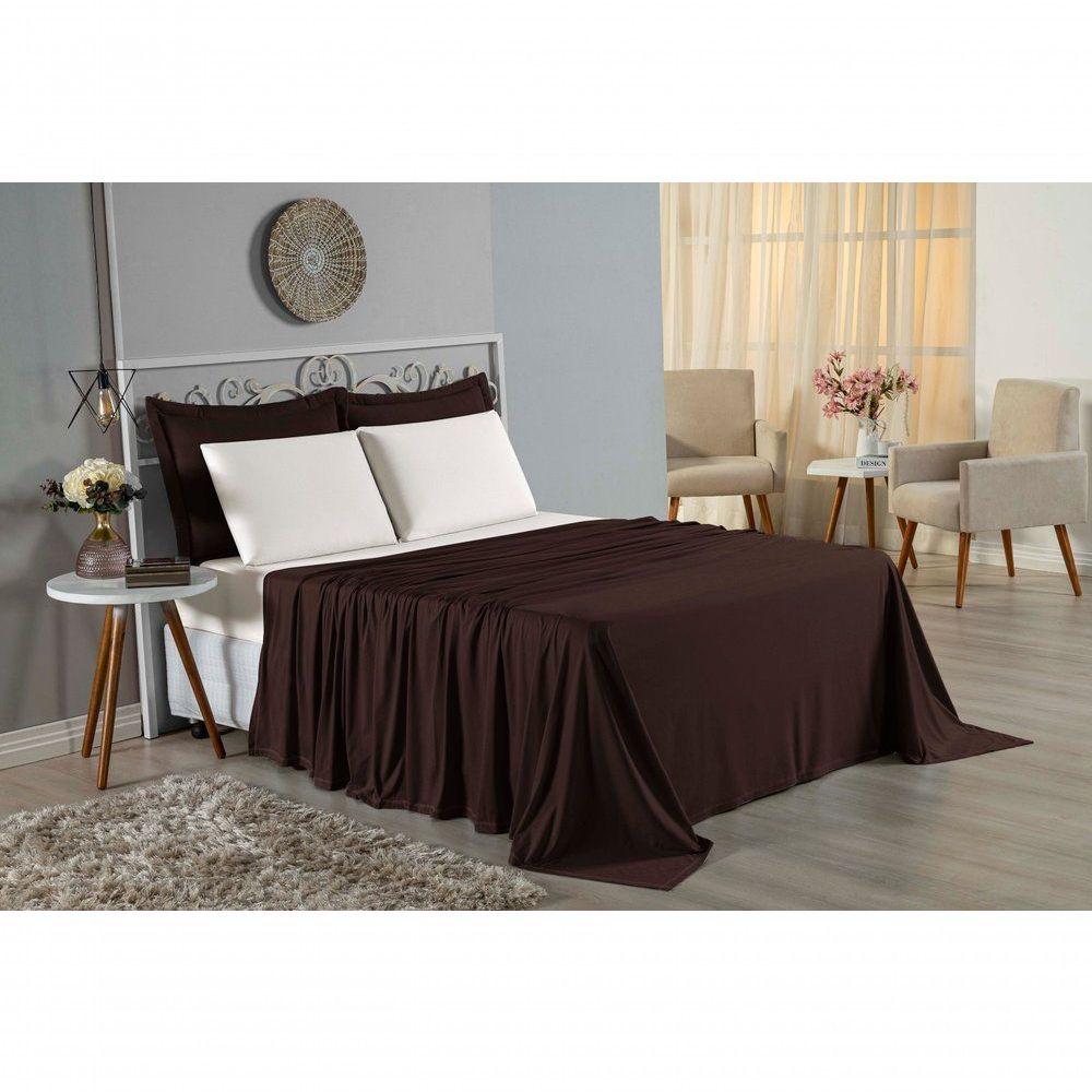 Jogo De Cama Casal Nobre 4 Peças Lençol Com Elástico De 30cm De Altura Malha 100% Algodão - Marrom / Palha