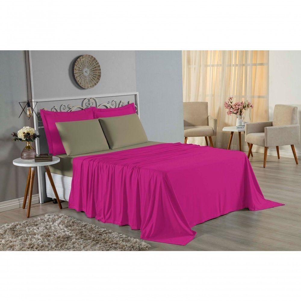 Jogo De Cama Casal Nobre 4 Peças Lençol Com Elástico De 30cm De Altura Malha 100% Algodão - Pink / Avelã
