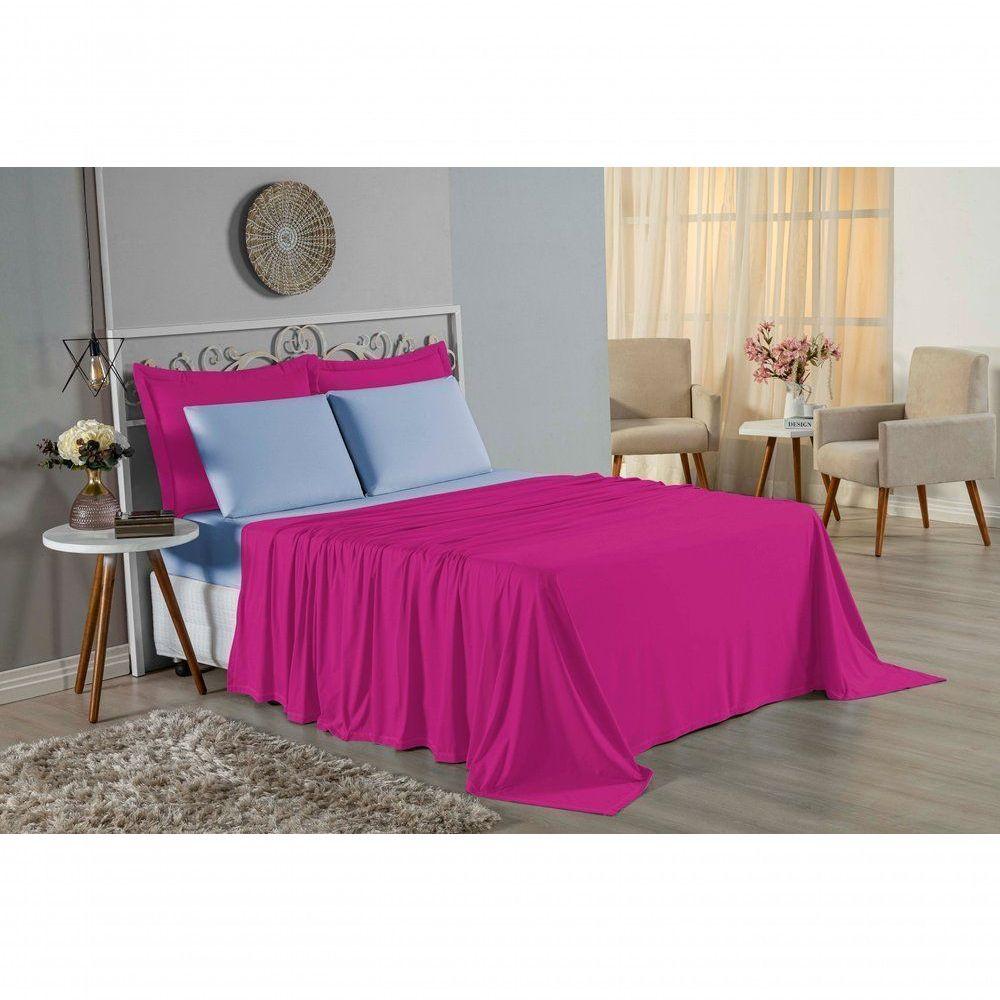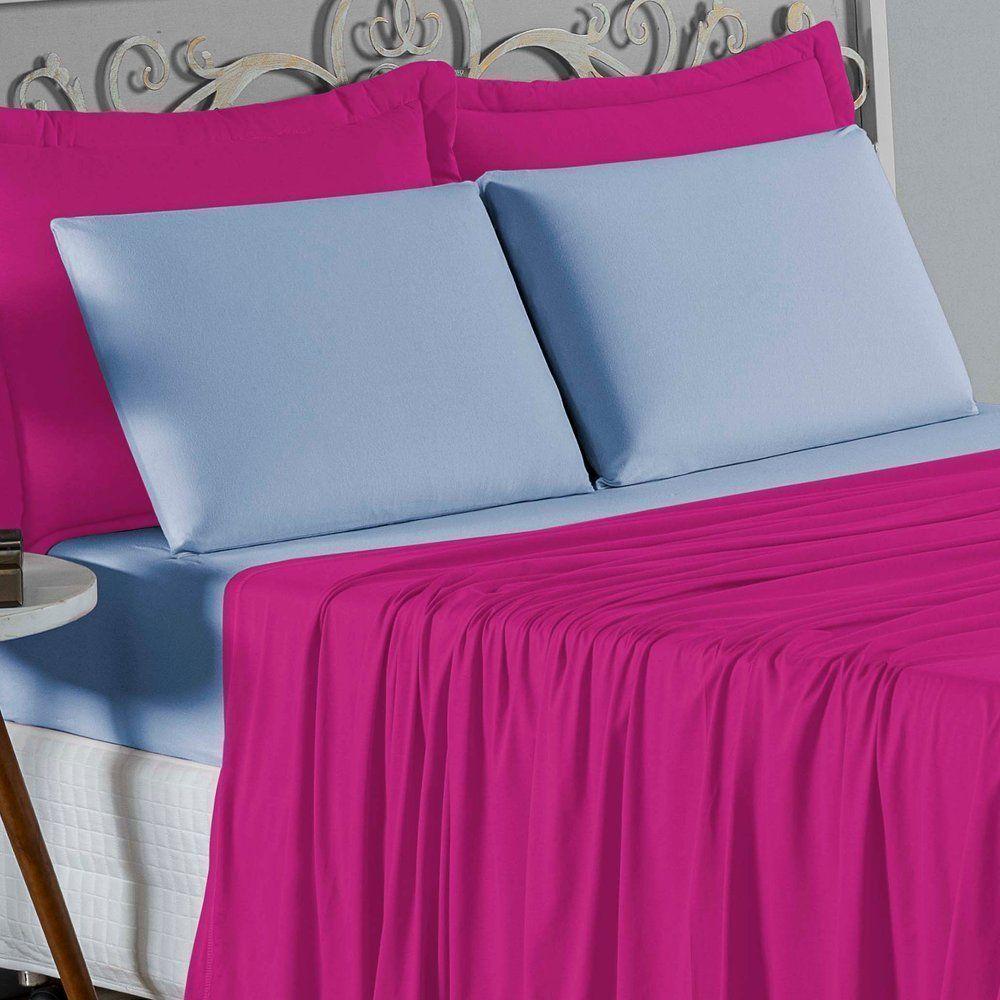 Jogo De Cama Casal Nobre 4 Peças Lençol Com Elástico De 30cm De Altura Malha 100% Algodão - Pink / Azul-bebê