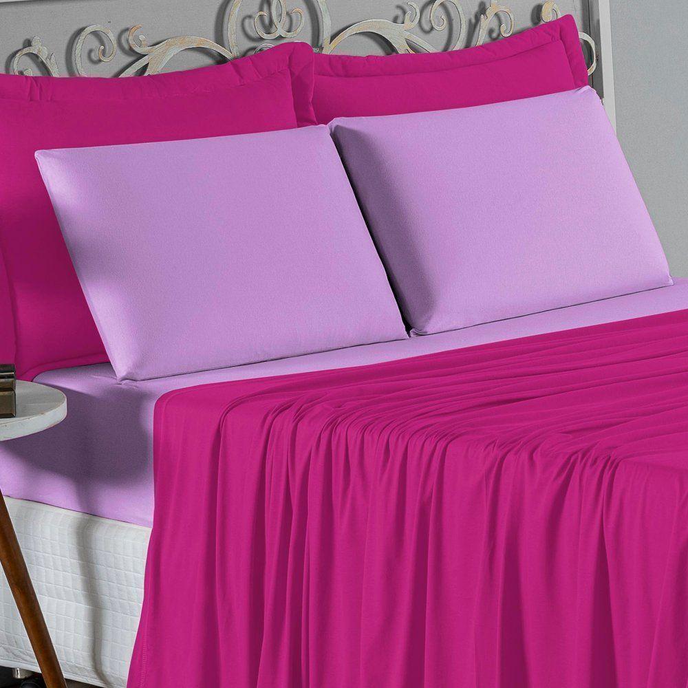 Jogo De Cama Casal Nobre 4 Peças Lençol Com Elástico De 30cm De Altura Malha 100% Algodão - Pink / Lilás