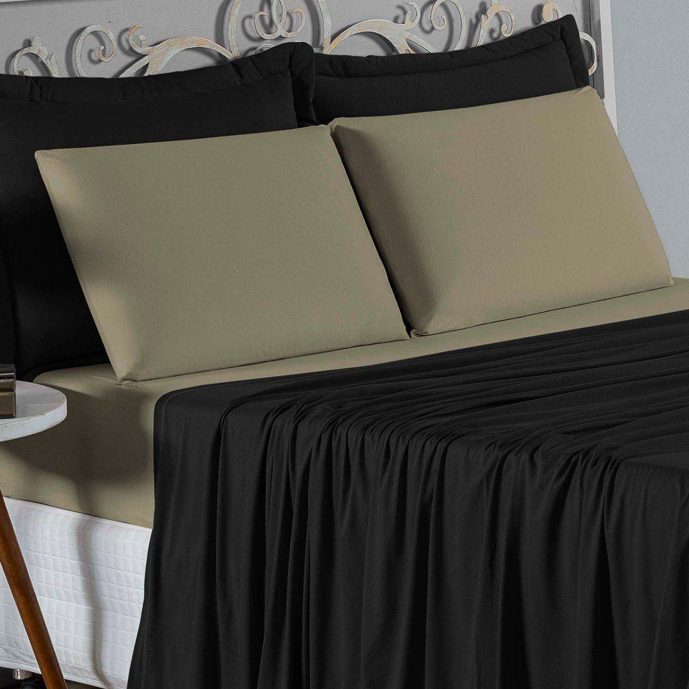 Jogo De Cama Casal Nobre 4 Peças Lençol Com Elástico De 30cm De Altura Malha 100% Algodão - Preto / Avelã