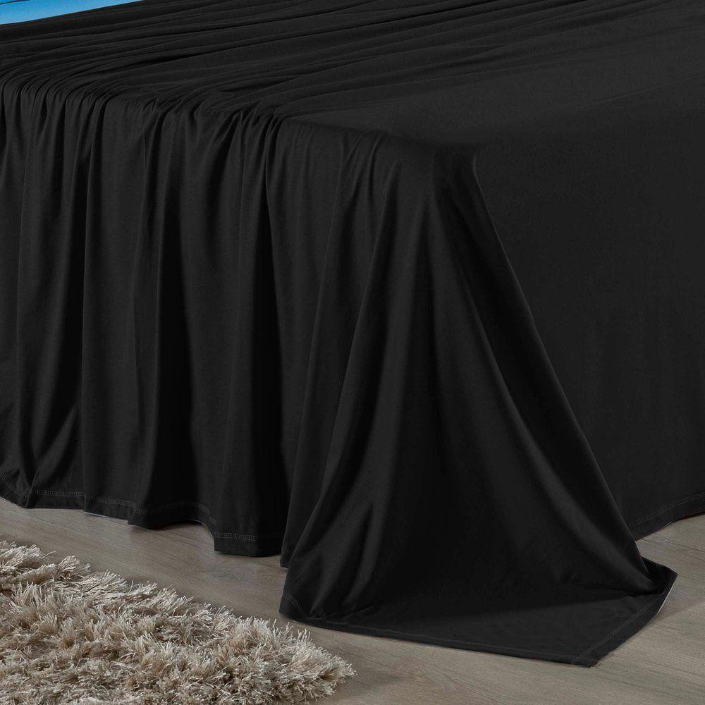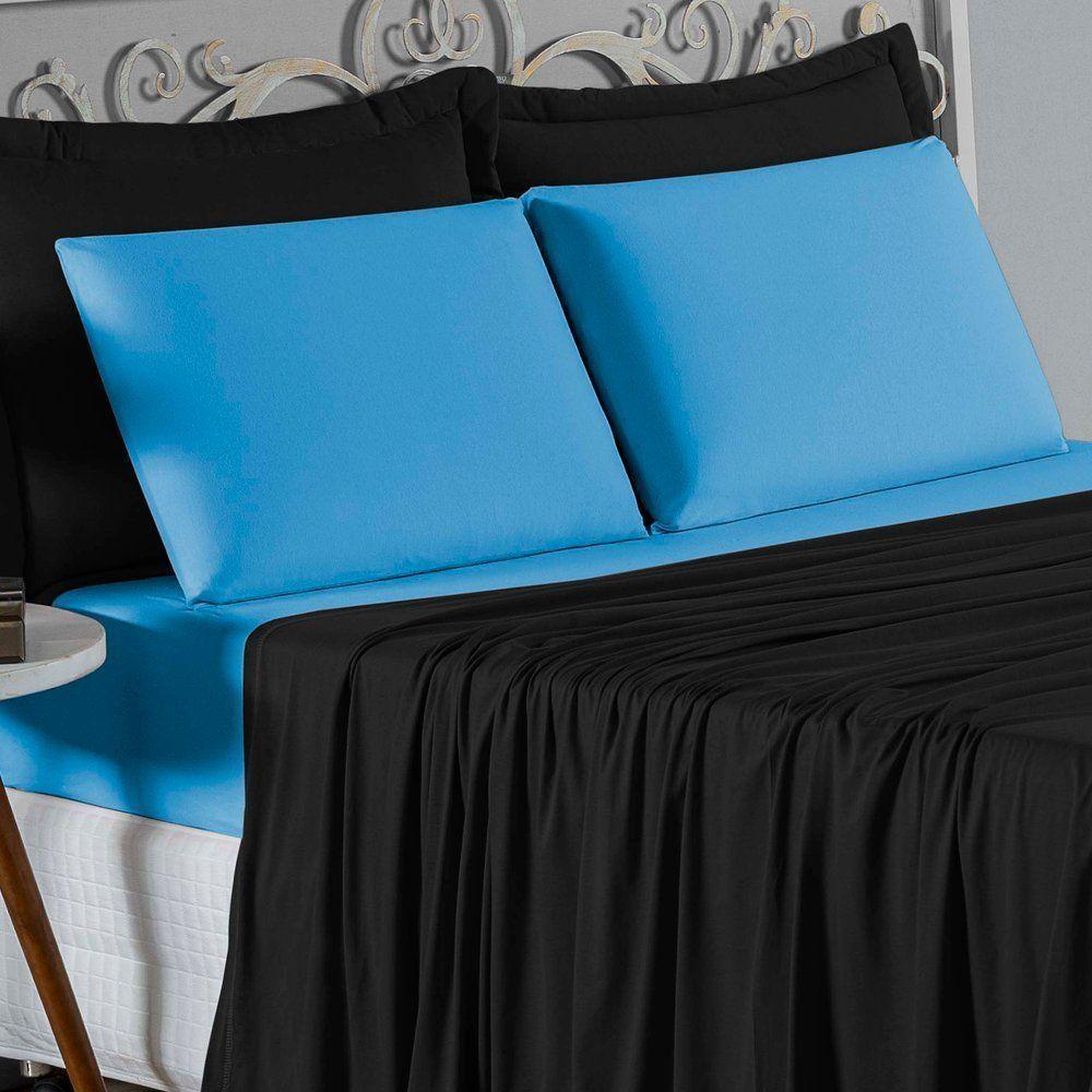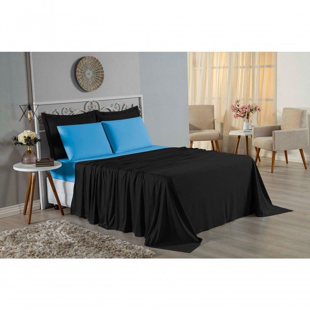 Jogo De Cama Casal Nobre 4 Peças Lençol Com Elástico De 30cm De Altura Malha 100% Algodão - Preto / Turquesa