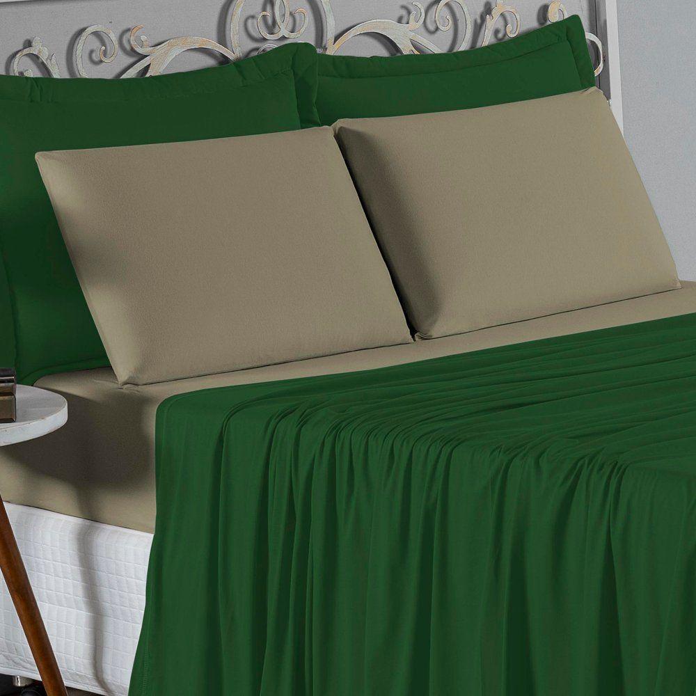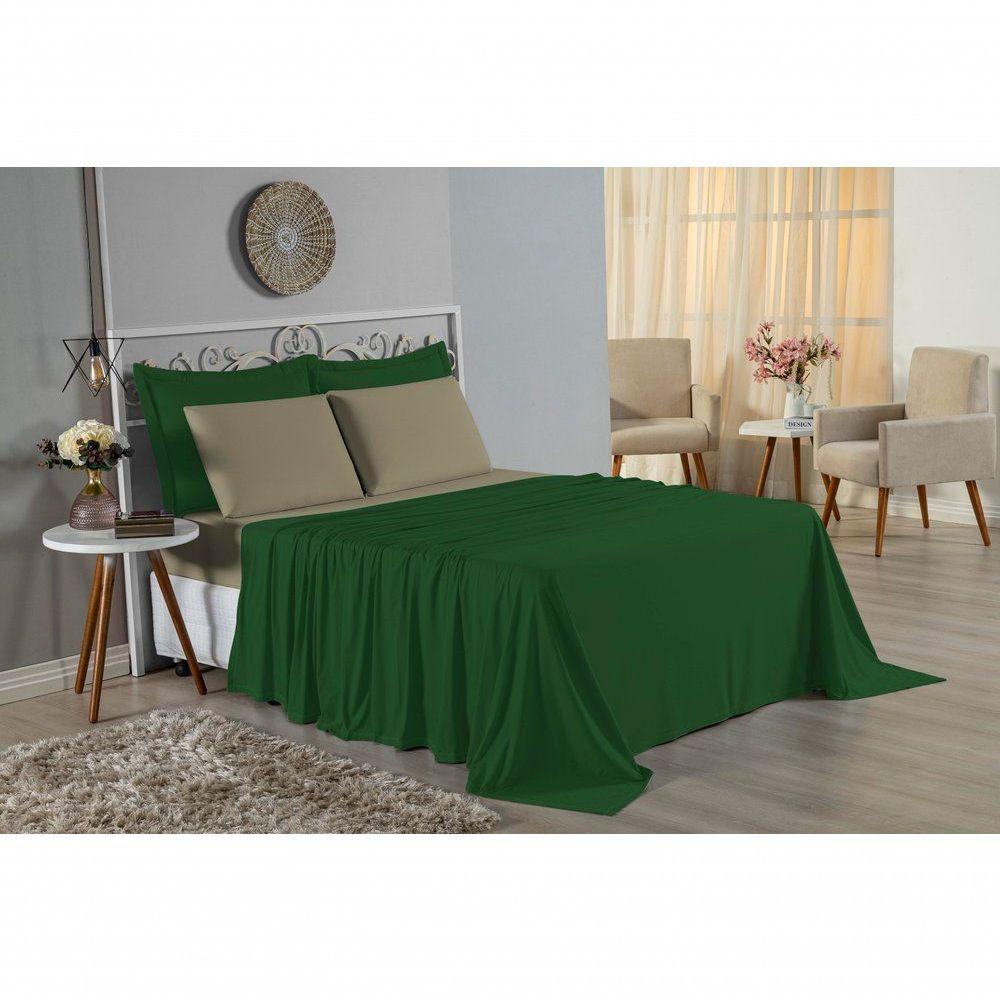 Jogo De Cama Casal Nobre 4 Peças Lençol Com Elástico De 30cm De Altura Malha 100% Algodão - Verde-bandeira / Avelã