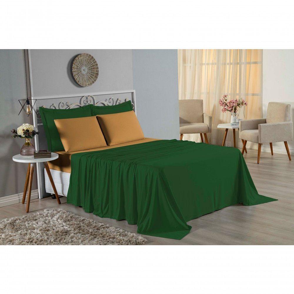 Jogo De Cama Casal Nobre 4 Peças Lençol Com Elástico De 30cm De Altura Malha 100% Algodão - Verde-bandeira / Cobre