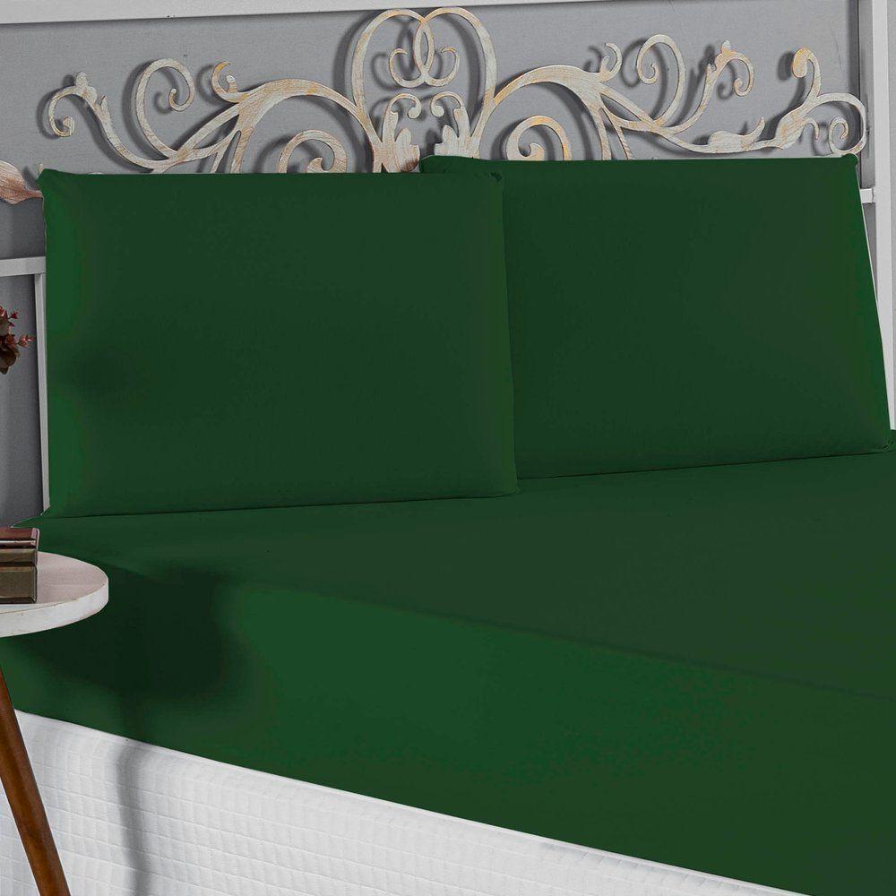 Jogo De Cama Casal Viúva Nobre 3 Peças Malha 100% Algodão - Verde-bandeira