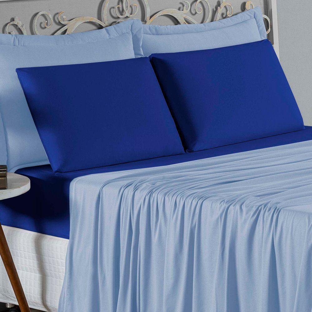 Jogo De Cama Casal Viúva Nobre 4 Peças Malha 100% Algodão - Azul-bebê / Royal