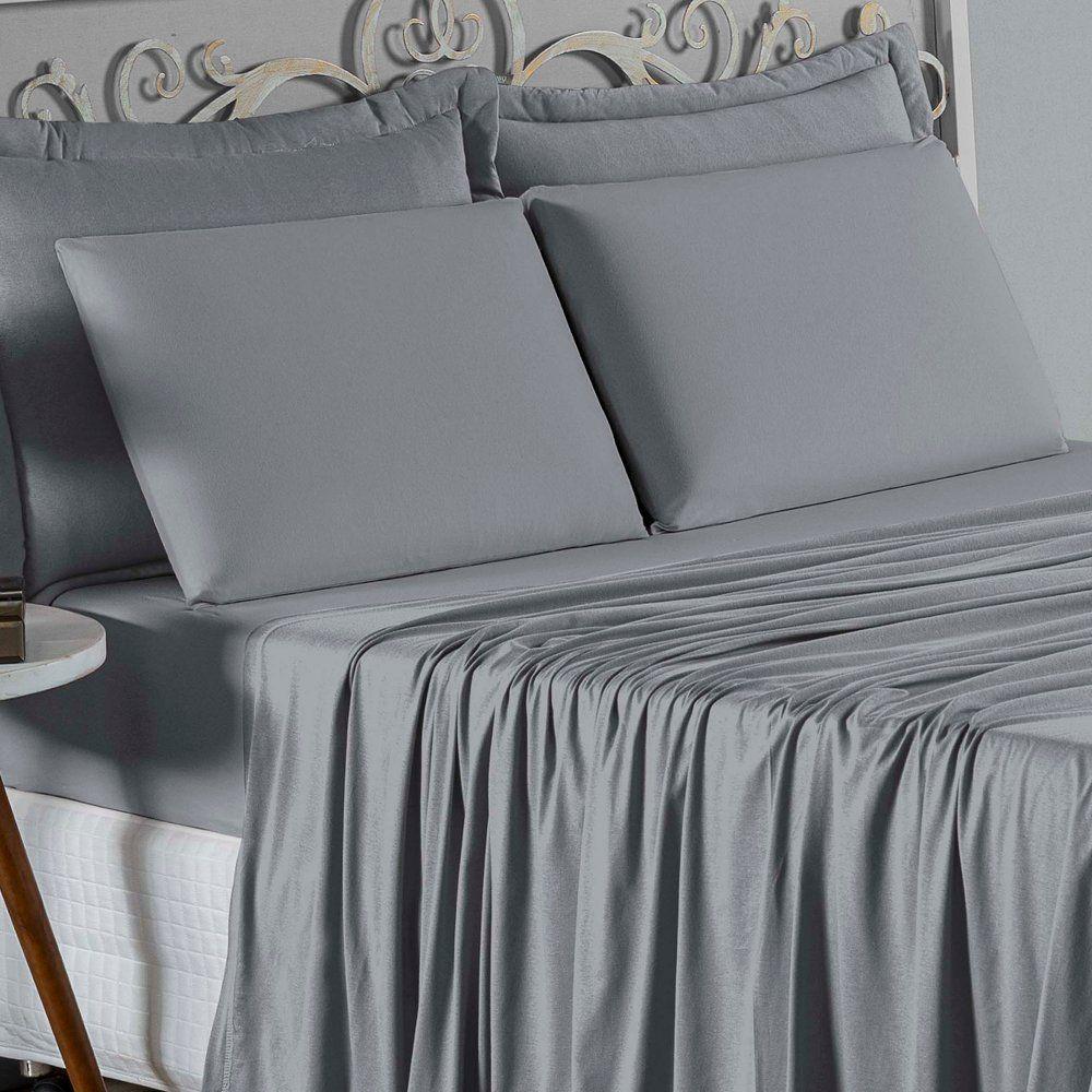 Jogo De Cama Casal Viúva Nobre 4 Peças Malha 100% Algodão - Cinza