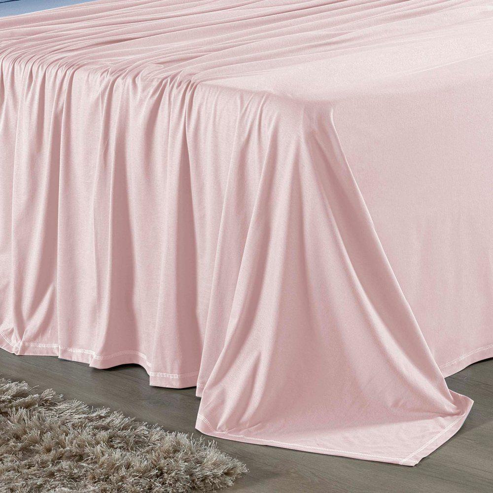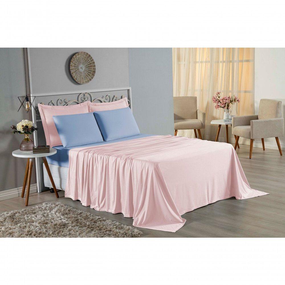 Jogo De Cama Casal Viúva Nobre 4 Peças Malha 100% Algodão - Rosa / Azul-bebê