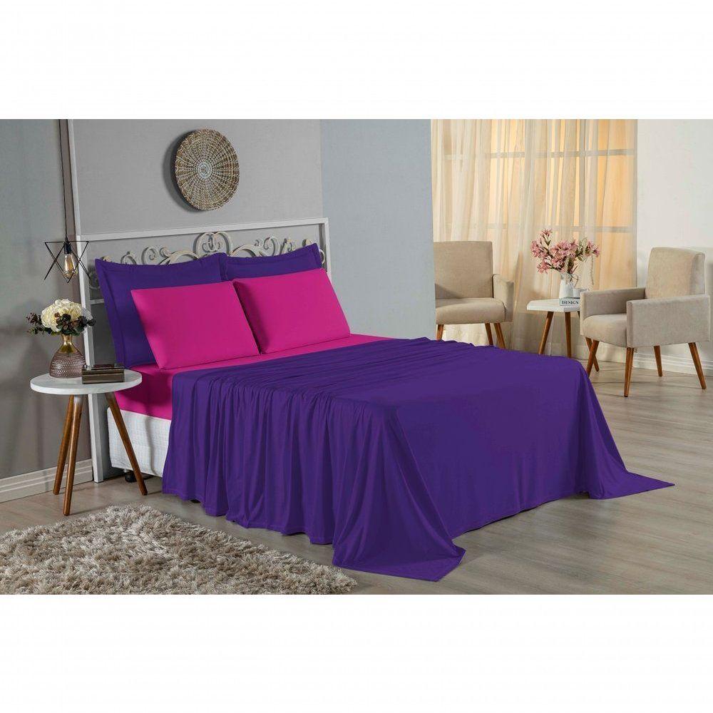 Jogo De Cama Casal Viúva Nobre 4 Peças Malha 100% Algodão - Roxo / Pink