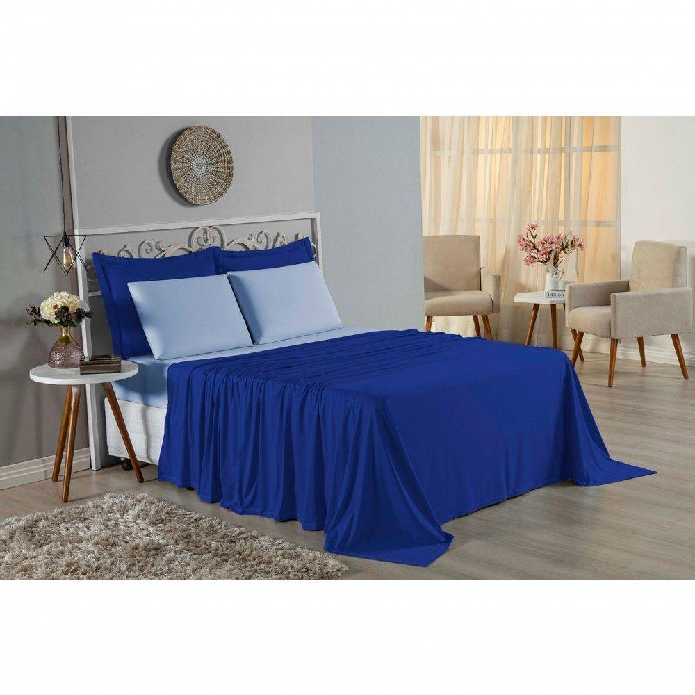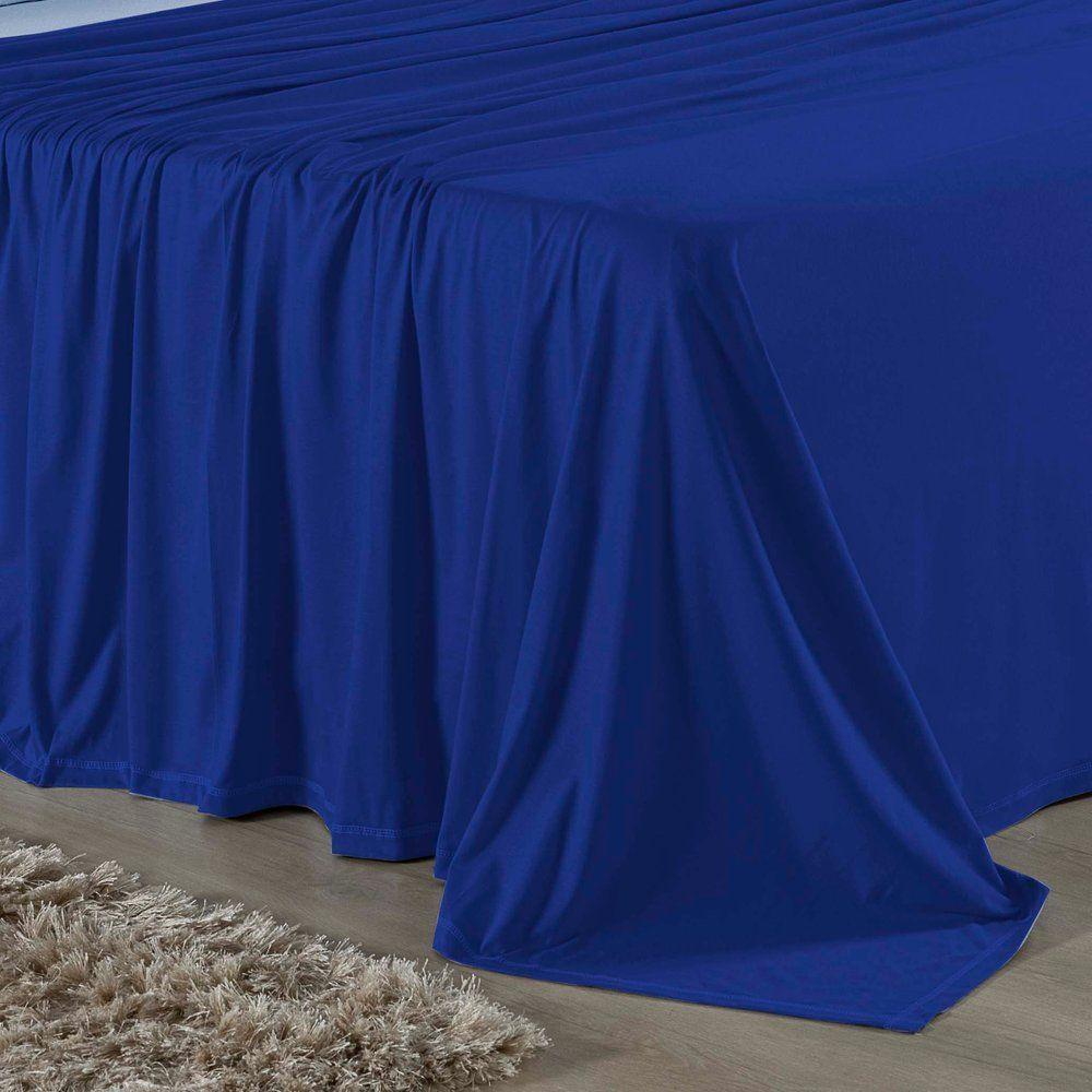 Jogo De Cama Casal Viúva Nobre 4 Peças Malha 100% Algodão - Royal / Azul-bebê