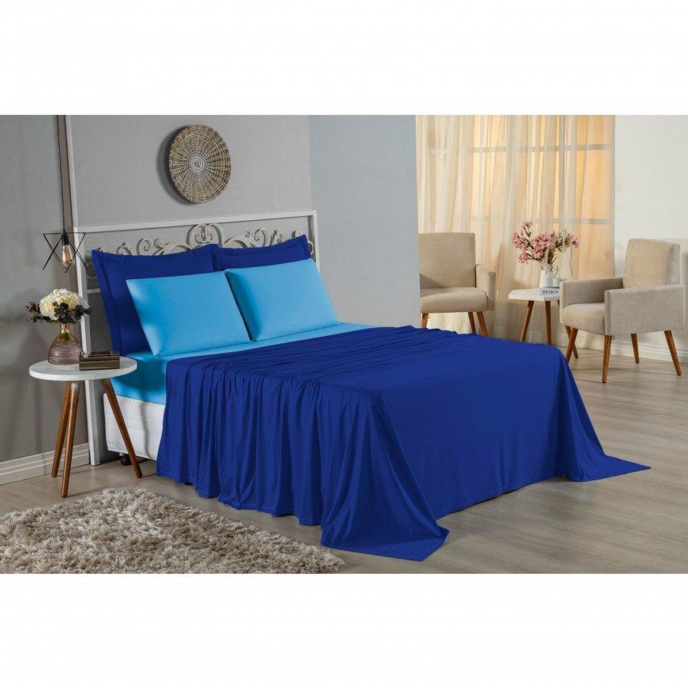 Jogo De Cama Casal Viúva Nobre 4 Peças Malha 100% Algodão - Royal / Turquesa