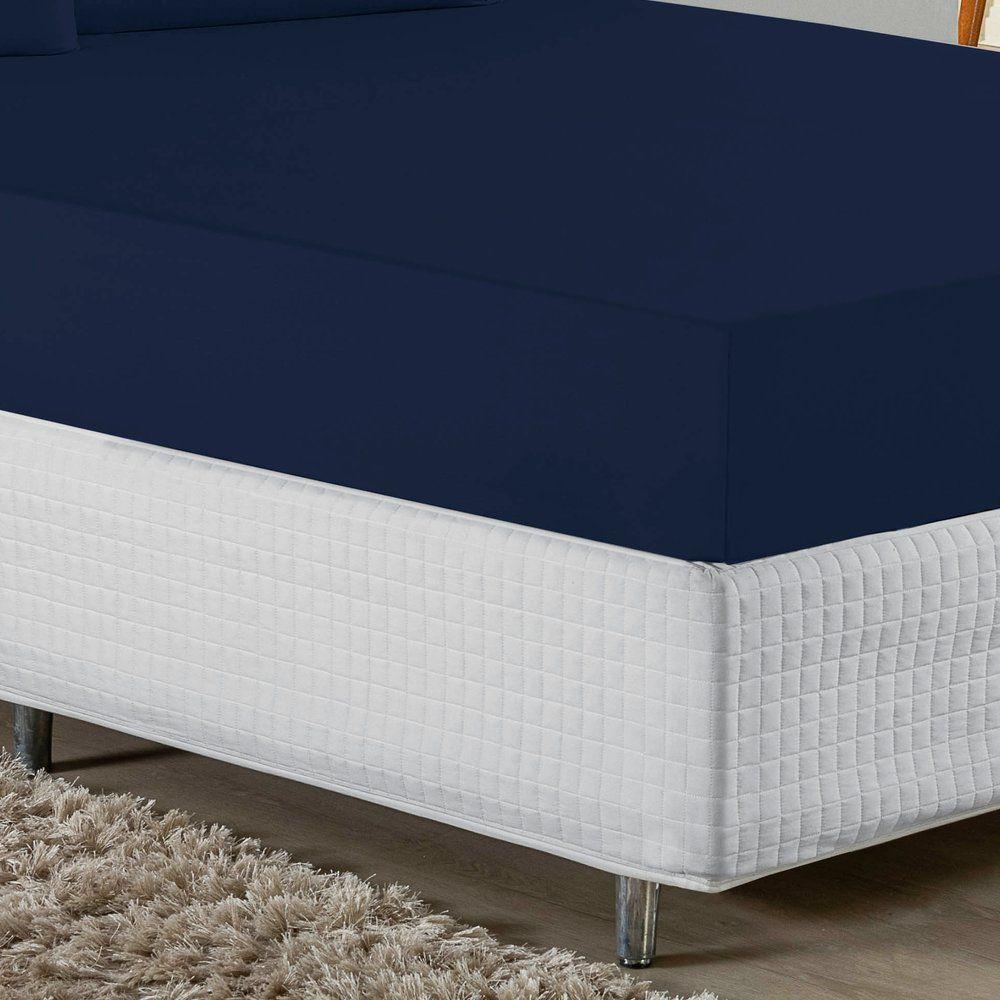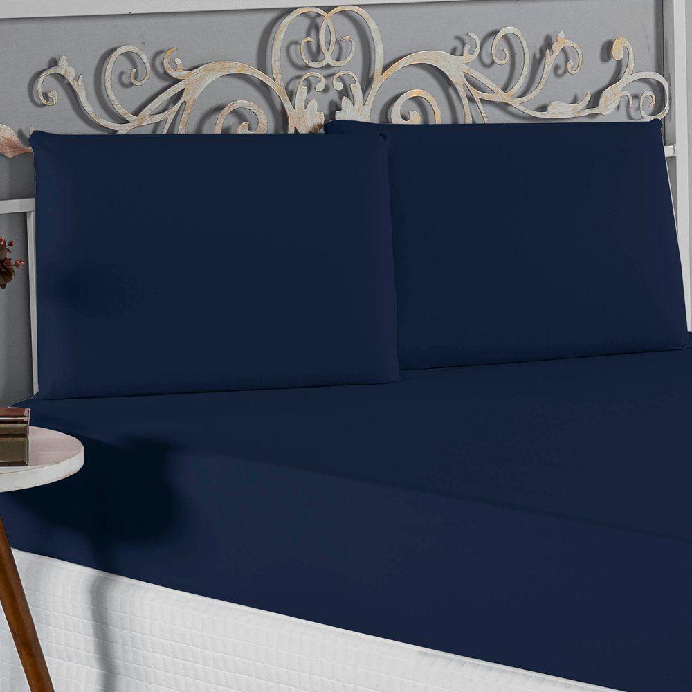 Jogo De Cama King Nobre 3 Peças Lençol Com Elástico De 30cm De Altura Malha 100% Algodão - Azul-marinho