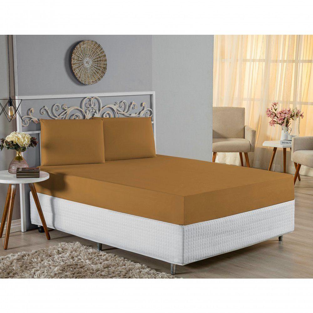 Jogo De Cama King Nobre 3 Peças Lençol Com Elástico De 30cm De Altura Malha 100% Algodão - Cobre