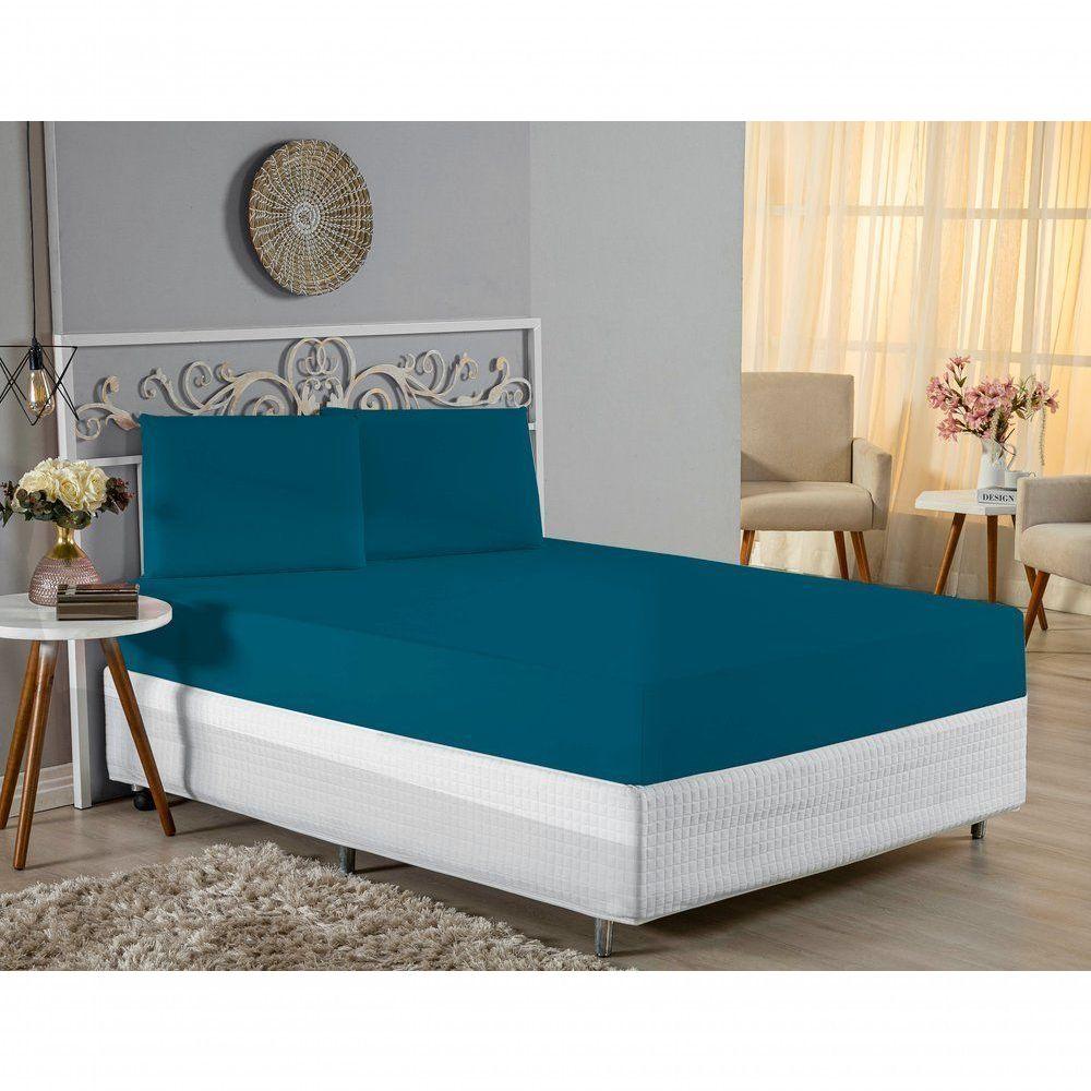 Jogo De Cama King Nobre 3 Peças Lençol Com Elástico De 30cm De Altura Malha 100% Algodão - Petróleo