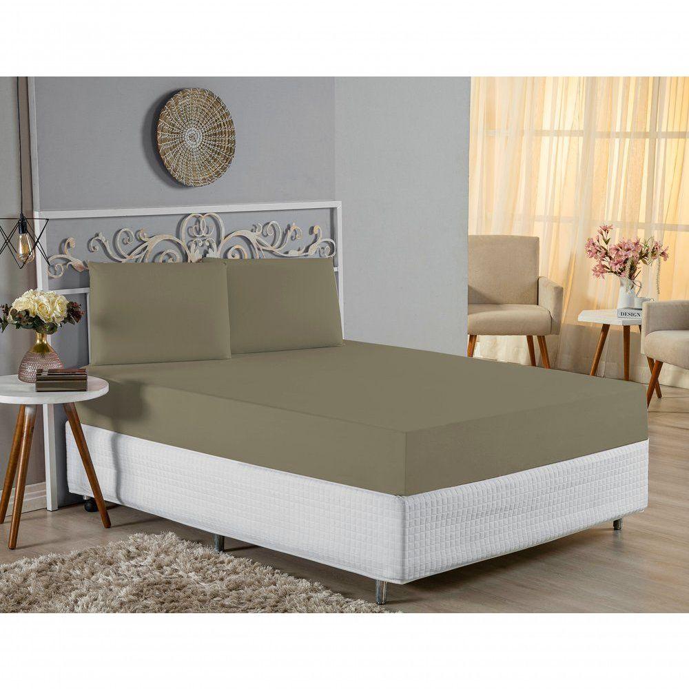 Jogo De Cama Casal Viúva Nobre 3 Peças Malha 100% Algodão - Avelã