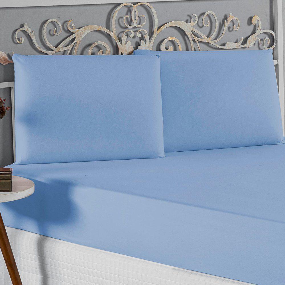 Jogo De Cama Casal Viúva Nobre 3 Peças Malha 100% Algodão - Azul-bebê