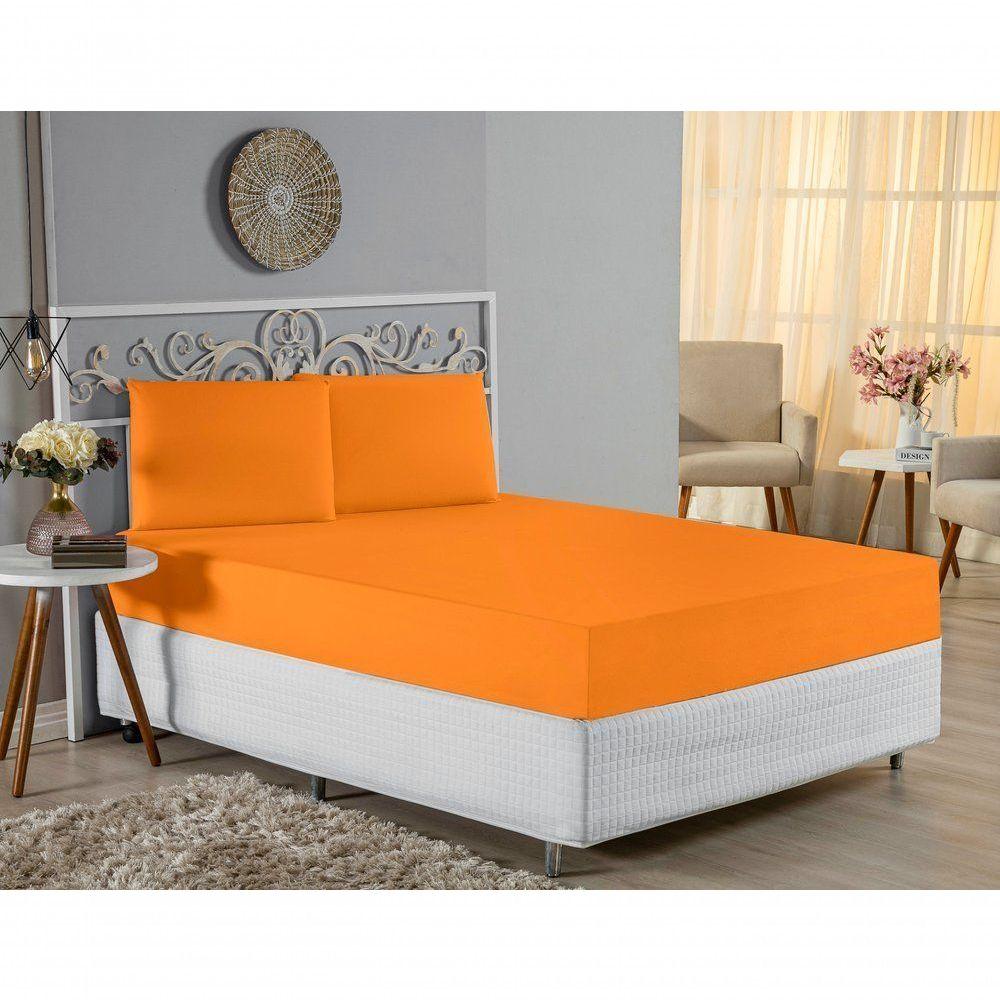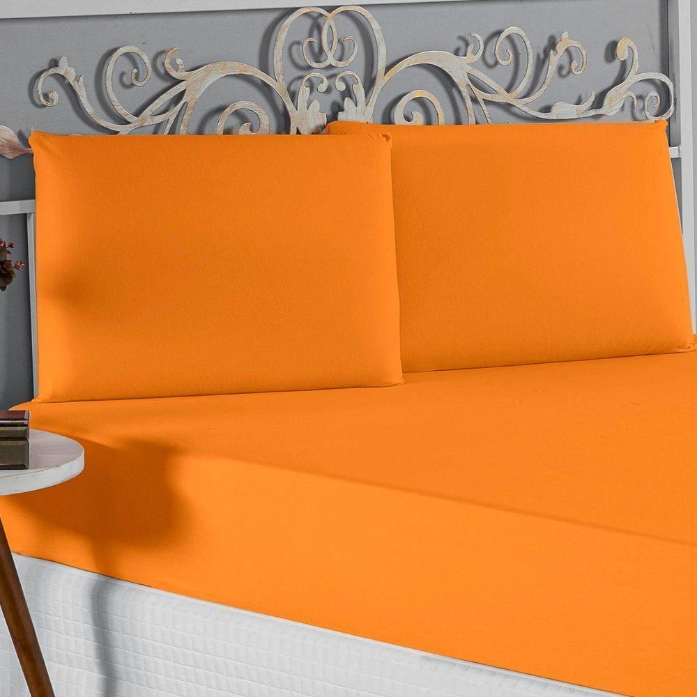 Jogo De Cama Casal Viúva Nobre 3 Peças Malha 100% Algodão - Laranja