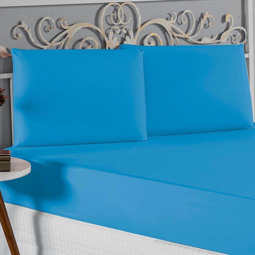 Jogo De Cama Casal Viúva Nobre 3 Peças Malha 100% Algodão - Turquesa