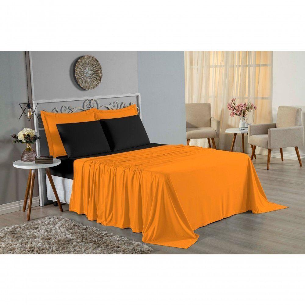 Jogo De Cama Casal Viúva Nobre 4 Peças Malha 100% Algodão - Laranja / Preto