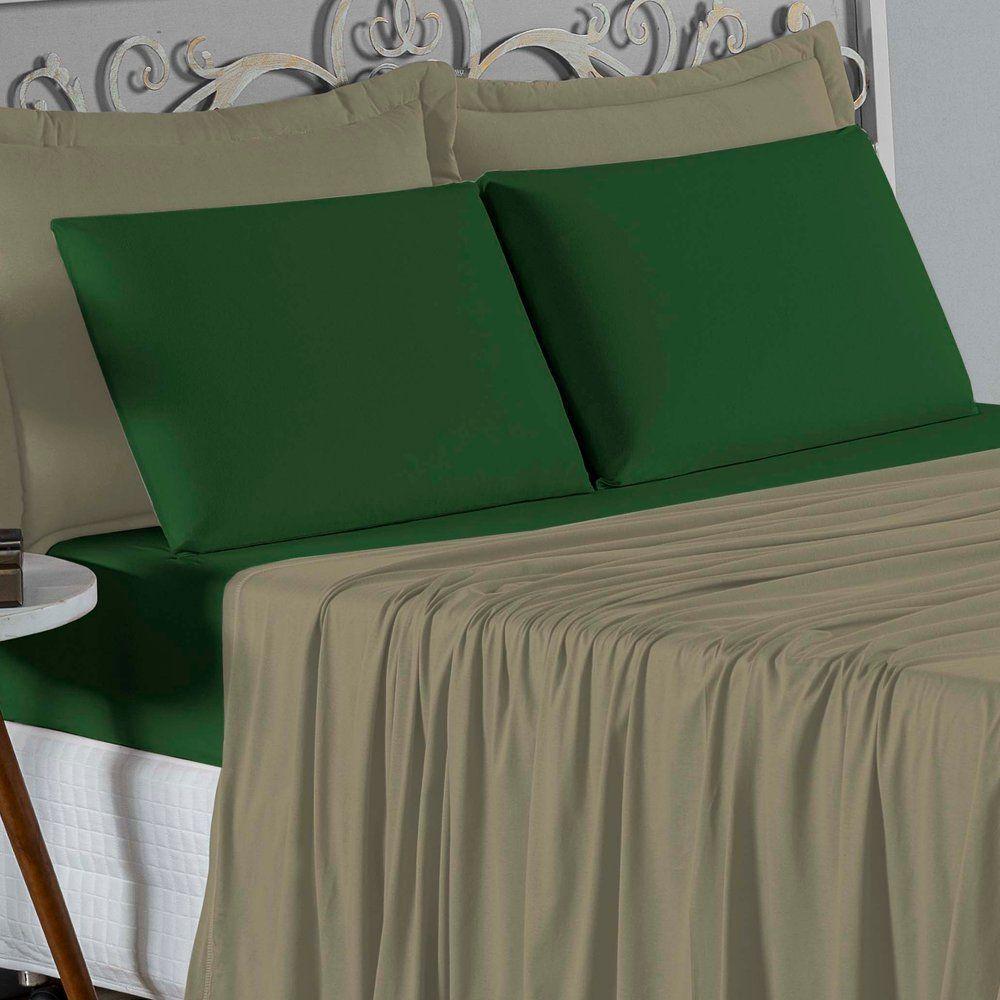 Jogo De Cama Casal Viúva Nobre 4 Peças Malha 100% Algodão - Avelã / Verde-bandeira