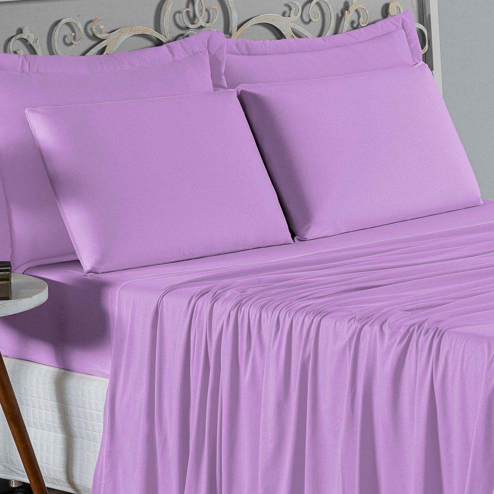 Jogo De Cama Casal Viúva Nobre 4 Peças Malha 100% Algodão - Lilás