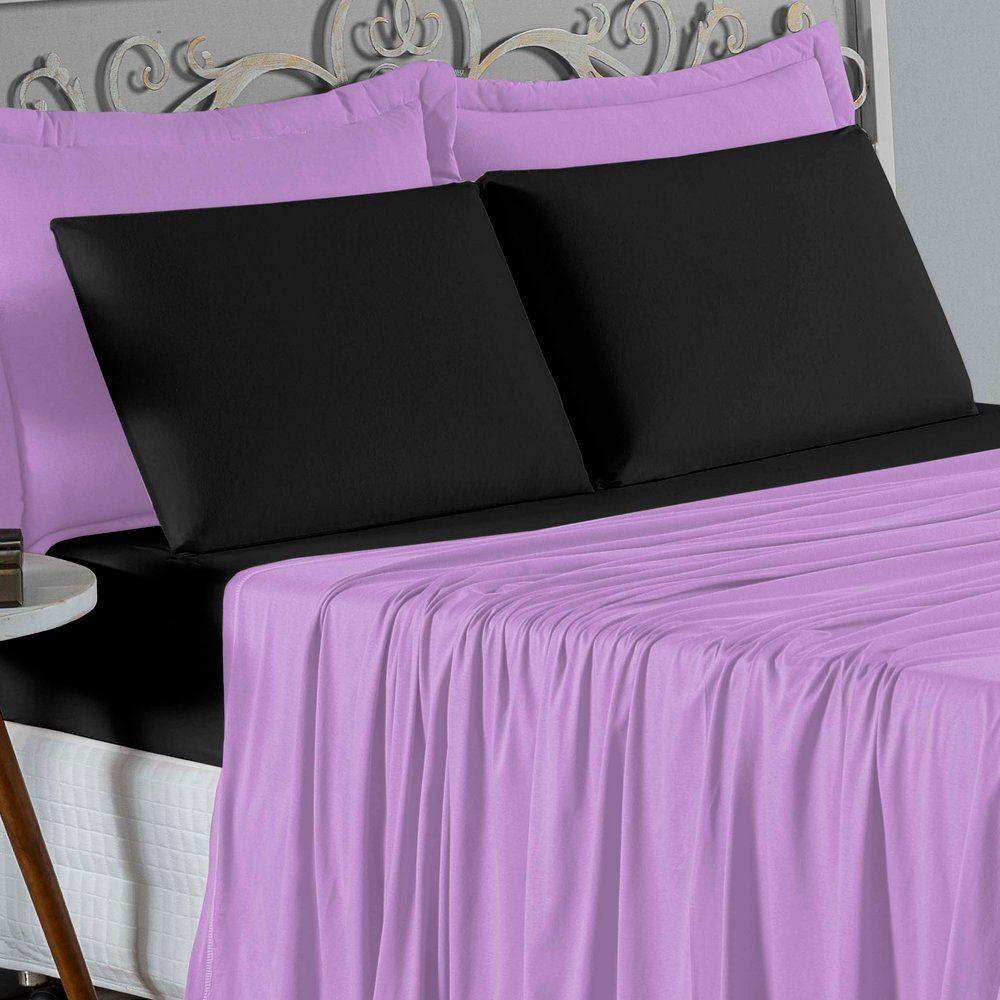 Jogo De Cama Casal Viúva Nobre 4 Peças Malha 100% Algodão - Lilás / Preto