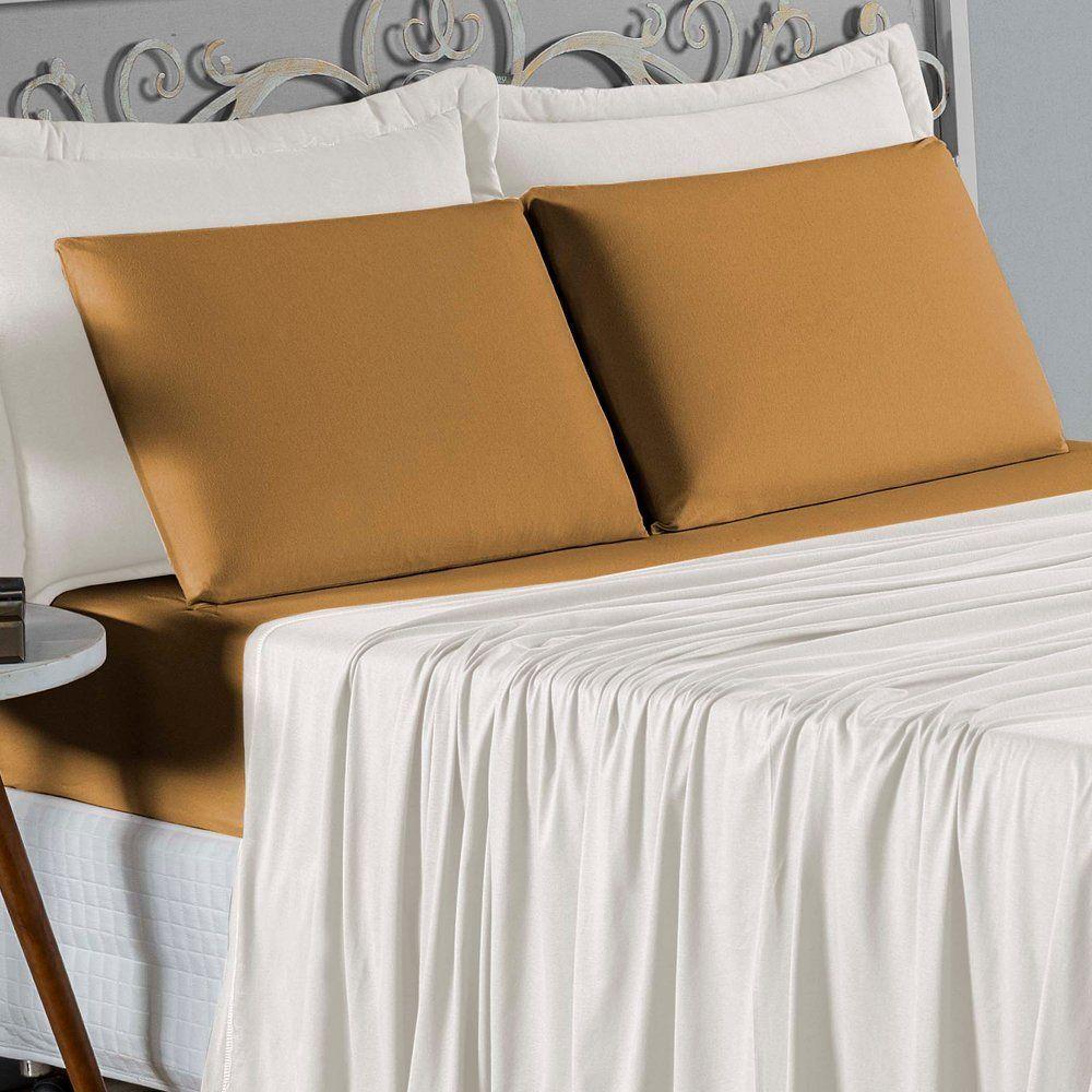 Jogo De Cama Casal Viúva Nobre 4 Peças Malha 100% Algodão - Palha / Cobre