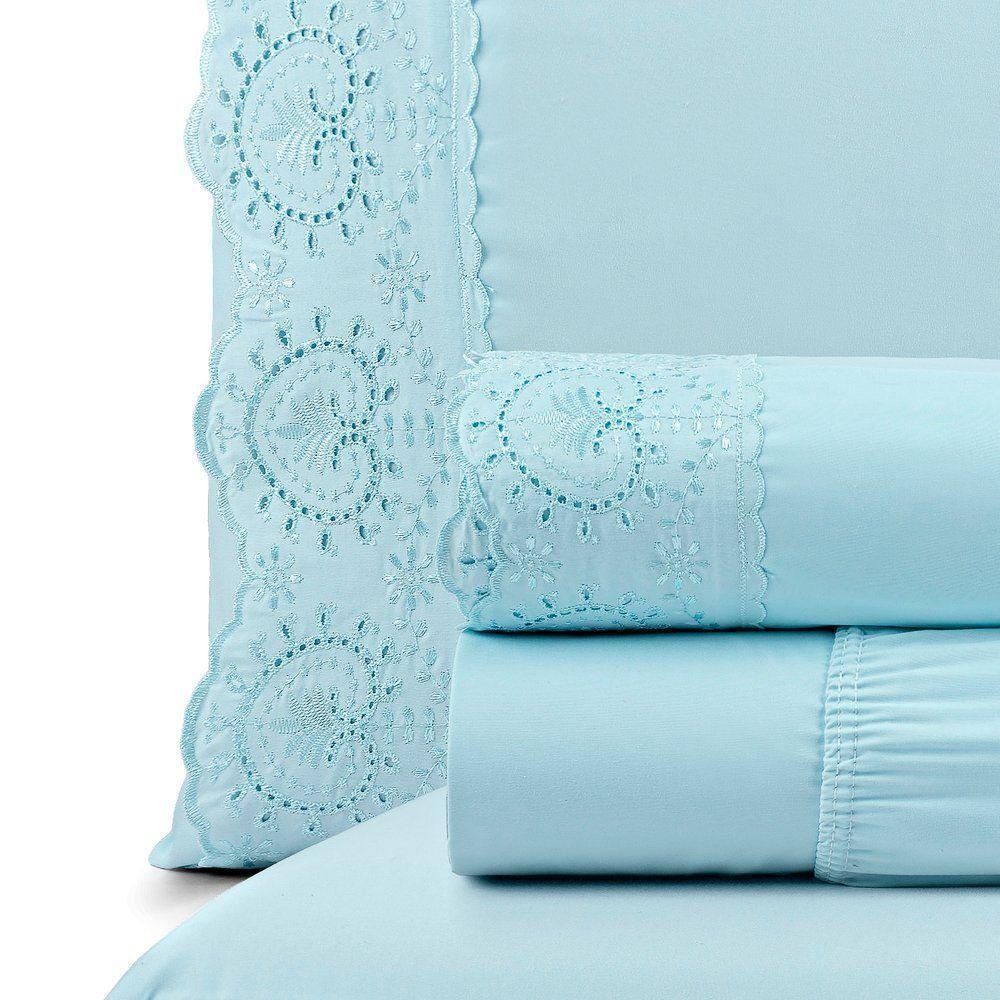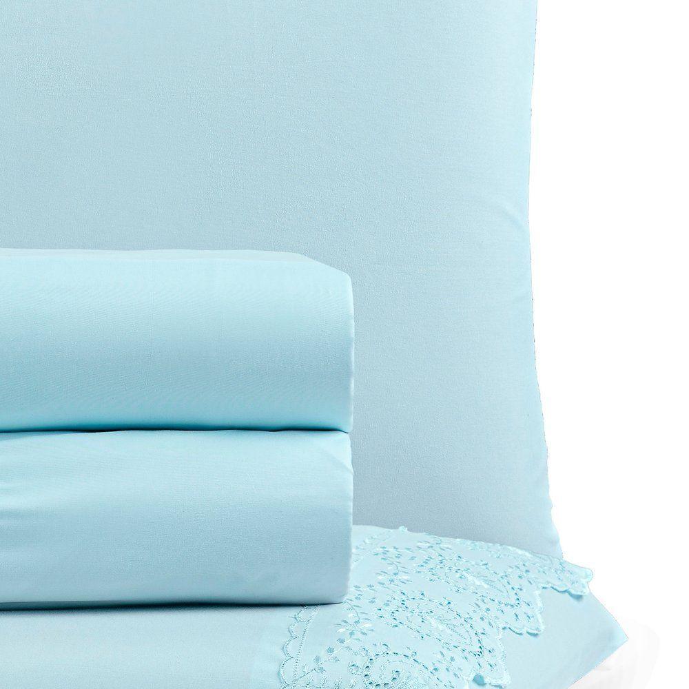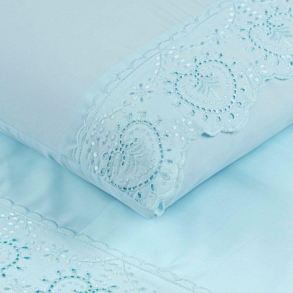 Jogo De Cama Nobless Casal Padrão 04 Peças 100% Poliéster - Azul SutilConheça o Jogo de Cama Nobless e deixe seu quarto mais aconchegante, produto com toque macio e conta com detalhe em bordado inglês que é um charme a parte!Produto De Excelente Qualidade.Produto composto por:01 Lençol de Cima 2,50m x 2,25m01 Lençol de Baixo c/ elástico na volta toda p/ colchão de 1,88m x 1,38cm x 30cm alt.02 Fronhas 70cm x 50cmTecido: Micropercal 200 fios com detalhe em bordado inglês nas fronhas e no lençol de cimaComposição: Tecido superior e inferior: 100% Poliéster
