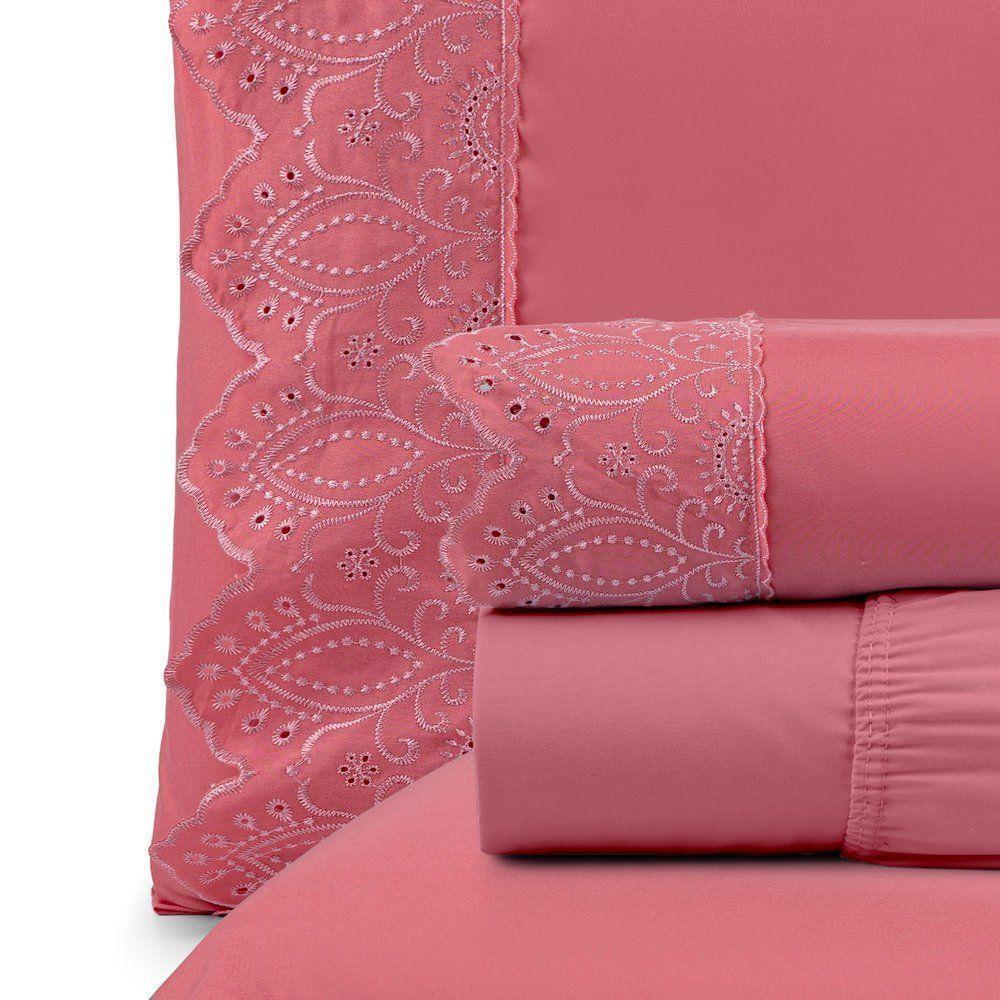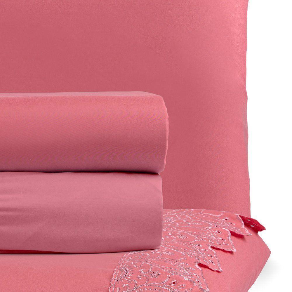 Jogo De Cama Nobless King 04 Peças 100% Poliéster - PessegoConheça o Jogo de Cama Nobless e deixe seu quarto mais aconchegante, produto com toque macio e conta com detalhe em bordado inglês que é um charme a parte!Produto De Excelente Qualidade.Produto composto por:01 Lençol de Cima 2,80m x 2,50m01 Lençol de Baixo c/ elástico na volta toda p/ colchão de 1,98m x 1,93cm x 38cm alt.02 Fronhas 70cm x 50cmTecido: Micropercal 200 fios com detalhe em bordado inglês nas fronhas e no lençol de cimaComposição: Tecido superior e inferior: 100% Poliéster