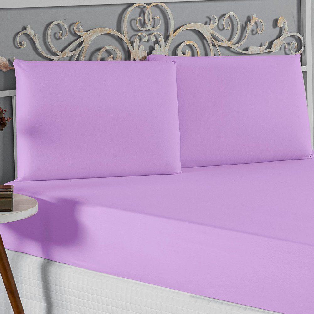 Jogo De Cama Queen Nobre 3 Peças Lençol Com Elástico De 30cm De Altura Malha 100% Algodão - Lilás