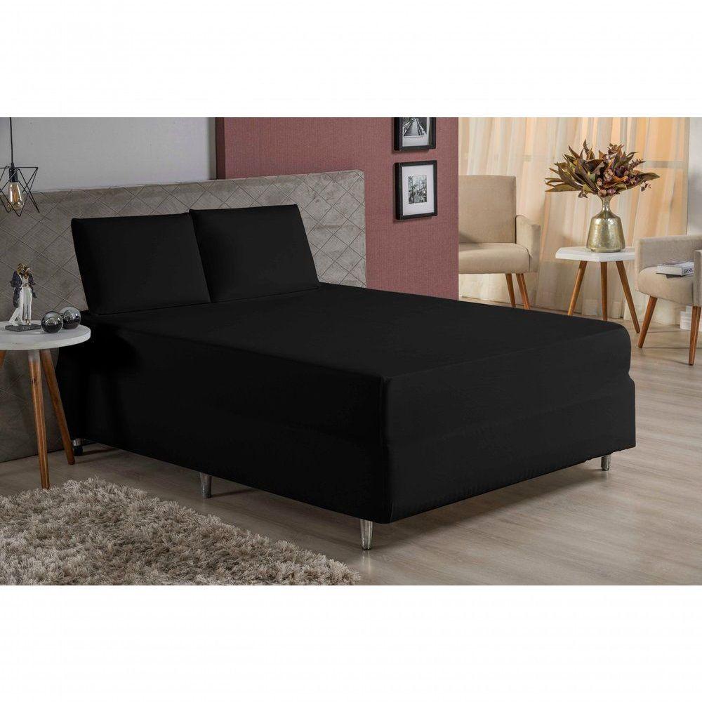Jogo De Cama Queen Nobre 3 Peças Luva De Box 55cm De Altura Malha 100% Algodão - Preto