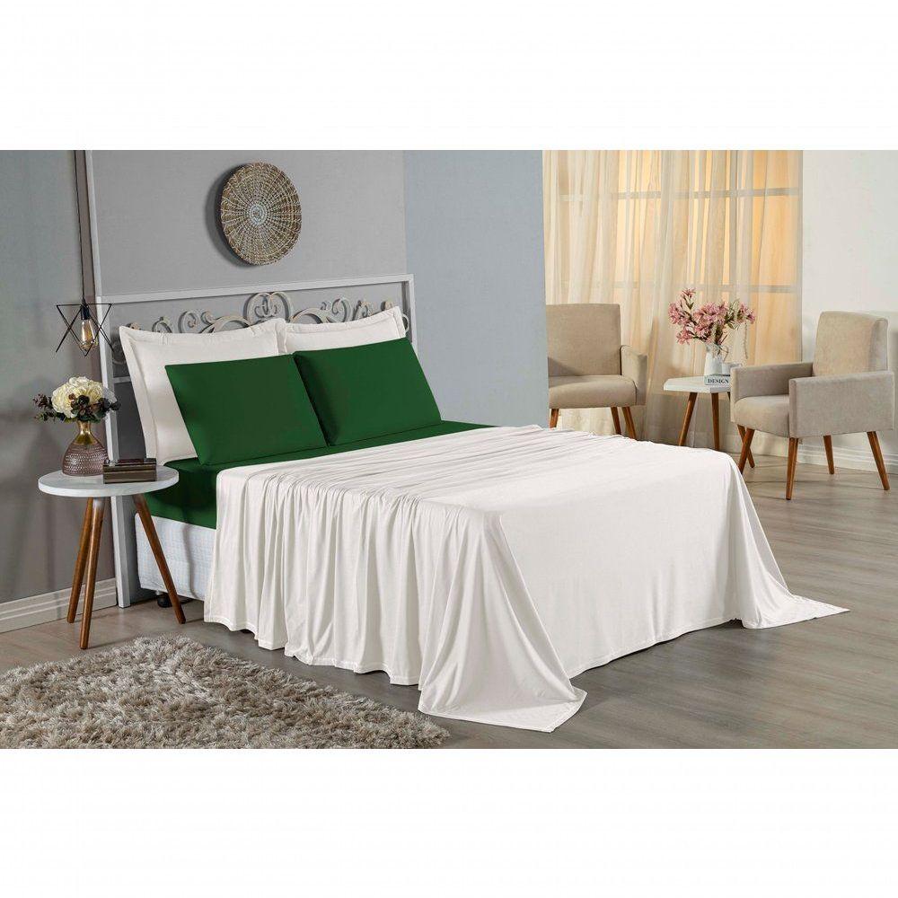 Jogo De Cama Queen Nobre 4 Peças Lençol Com Elástico De 30cm De Altura Malha 100% Algodão - Palha / Verde-bandeiraGaranta noites de sono luxuosas com o Jogo de Cama Queen Nobre 4 Peças. O equilíbrio perfeito entre beleza, conforto e a qualidade incomparável do algodão.Por que este Jogo de Cama é a escolha perfeita?- Experiência Premium: O jogo completo (com lençol de cima) permite montar a cama posta perfeita, agregando sofisticação ao quarto.- Respirabilidade e Frescor: Feito em 100% Algodão, o tecido permite que a pele respire, garantindo uma temperatura agradável durante toda a noite.- Medidas Generosas: O lençol de cima amplo (2,40m x 2,60m) oferece excelente cobertura, enquanto o lençol de baixo se ajusta a colchões Queen de até 30cm.- Resistência: Tecido robusto que não forma bolinhas com facilidade e mantém o toque suave por muito tempo.Produto composto por (Total 04 Peças):01 Lençol de Cima (Virol): 2,40m x 2,60m01 Lençol de Baixo com Elástico: 1,58m x 1,98m x 30cm02 Fronhas: 70cm x 50cmComposição:Tecido: Malha 100% Algodão - Fio 30/1 Penteado