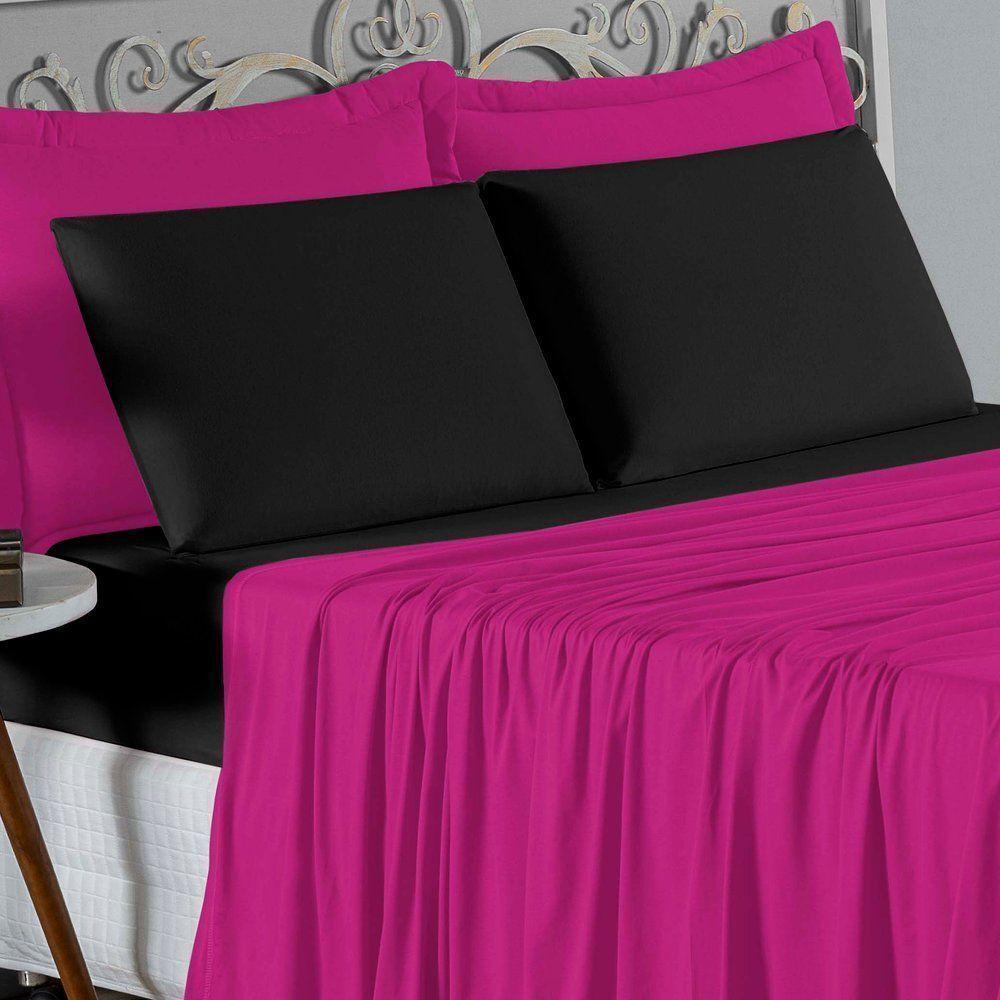 Jogo De Cama Queen Nobre 4 Peças Lençol Com Elástico De 30cm De Altura Malha 100% Algodão - Pink / Preto