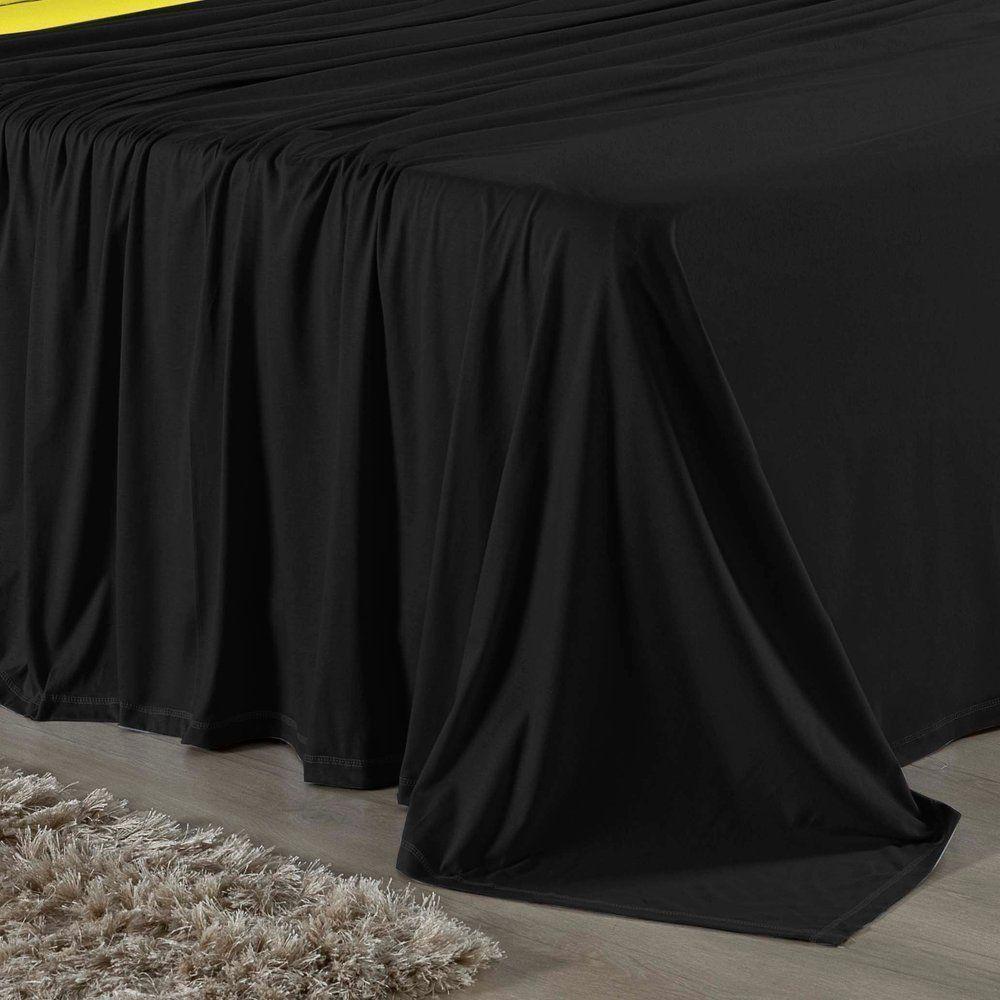 Jogo De Cama Queen Nobre 4 Peças Lençol Com Elástico De 30cm De Altura Malha 100% Algodão - Preto / Amarelo