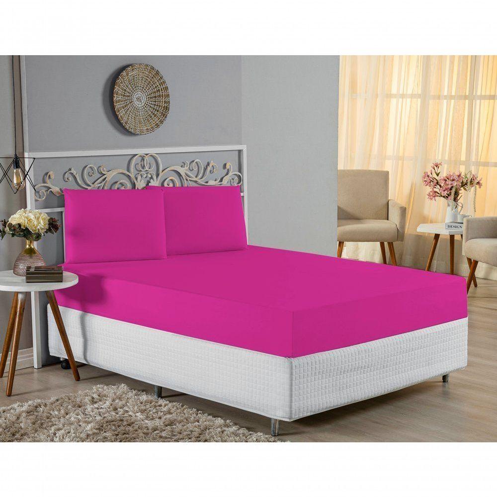 Jogo De Cama Queen Nobre 3 Peças Lençol Com Elástico De 30cm De Altura Malha 100% Algodão - Pink