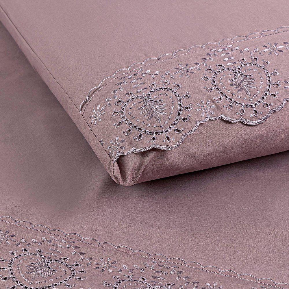 Jogo De Cama Nobless Queen 04 Peças 100% Poliéster - Frape UvaConheça o Jogo de Cama Nobless e deixe seu quarto mais aconchegante, produto com toque macio e conta com detalhe em bordado inglês que é um charme a parte!Produto De Excelente Qualidade.Produto composto por:01 Lençol de Cima 2,50m x 2,40m01 Lençol de Baixo c/ elástico na volta toda p/ colchão de 1,98m x 1,58cm x 38cm alt.02 Fronhas 70cm x 50cmTecido: Micropercal 200 fios com detalhe em bordado inglês nas fronhas e no lençol de cimaComposição: Tecido superior e inferior: 100% Poliéster
