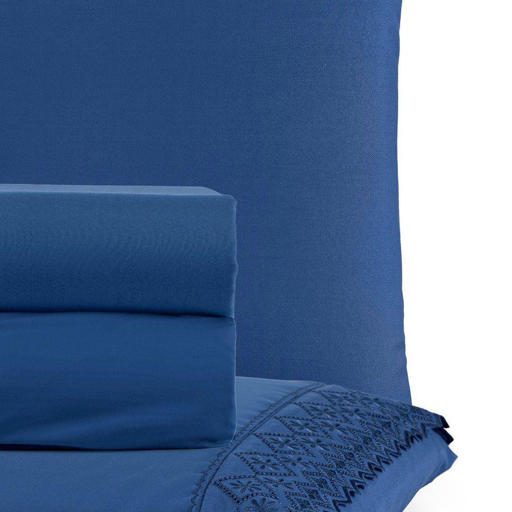 Jogo De Cama Nobless Solteiro 03 Peças 100% Poliéster - Azul Galaxia