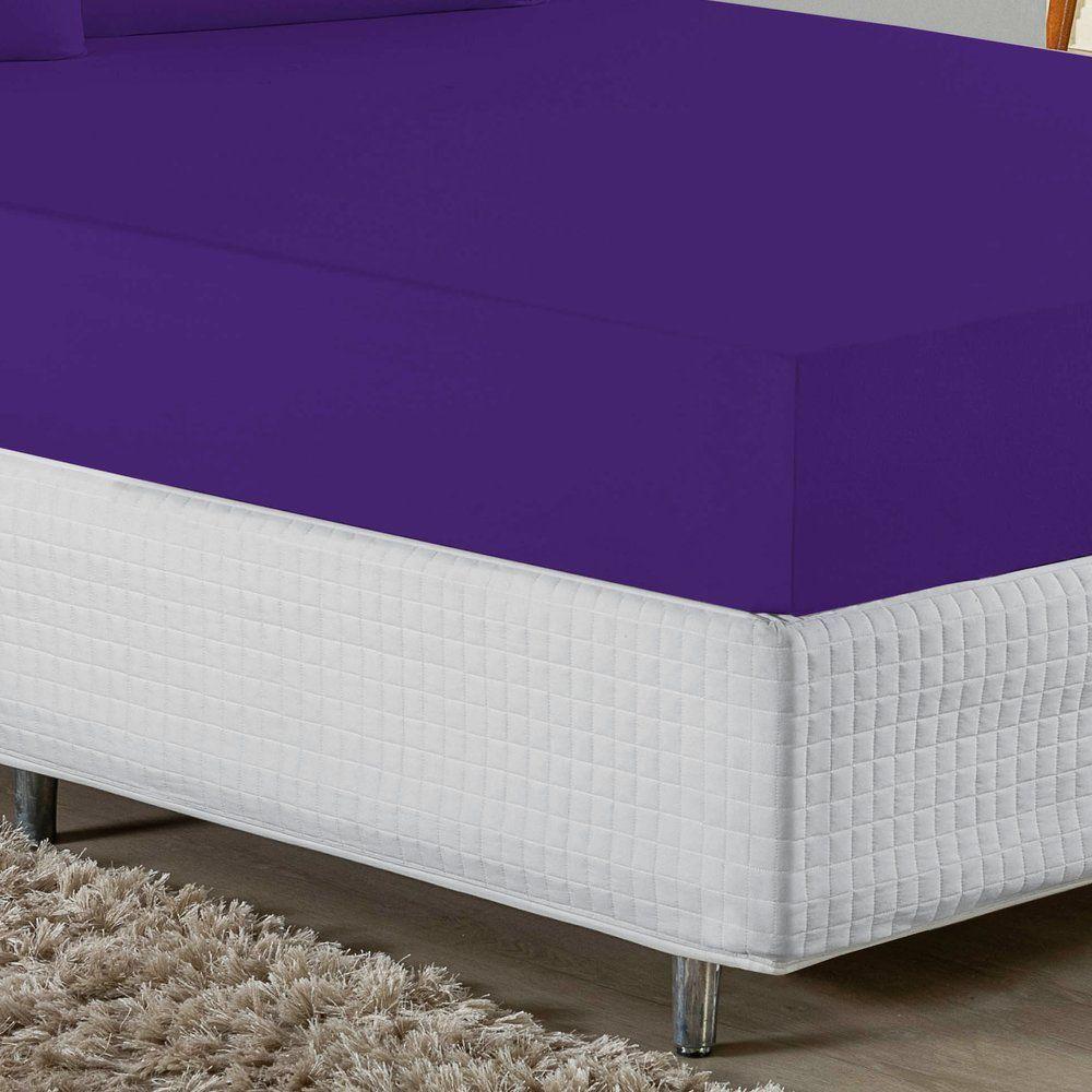 Jogo De Cama Queen Nobre 3 Peças Lençol Com Elástico De 30cm De Altura Malha 100% Algodão - Roxo