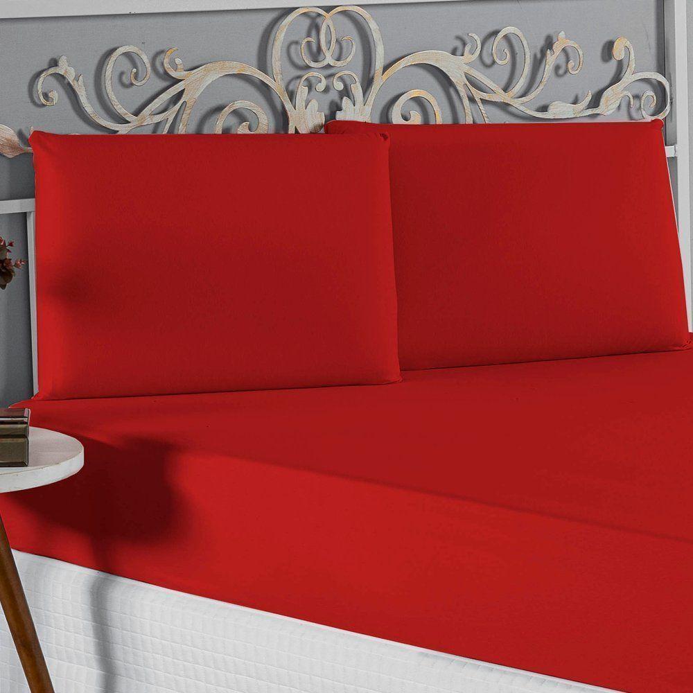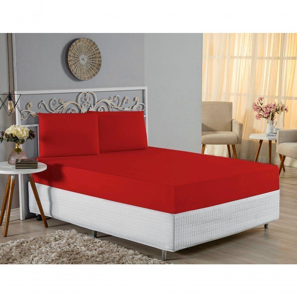 Jogo De Cama Queen Nobre 3 Peças Lençol Com Elástico De 30cm De Altura Malha 100% Algodão - Vermelho