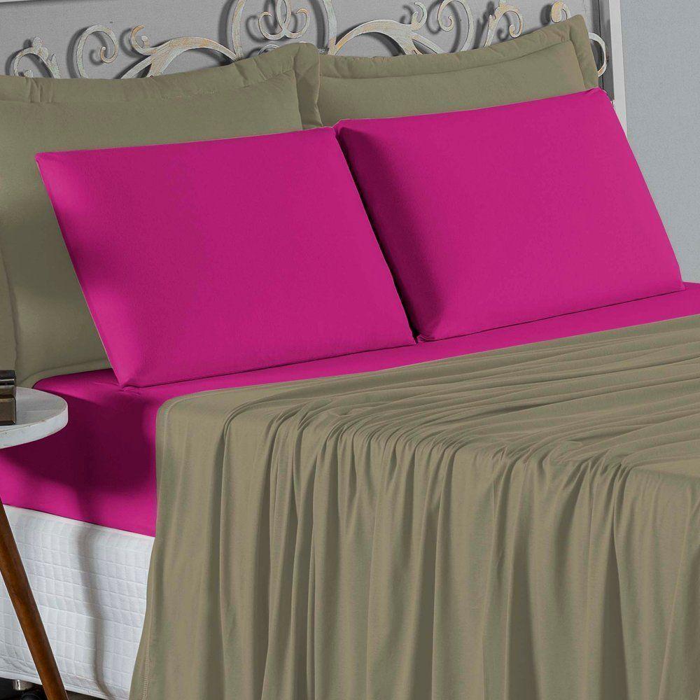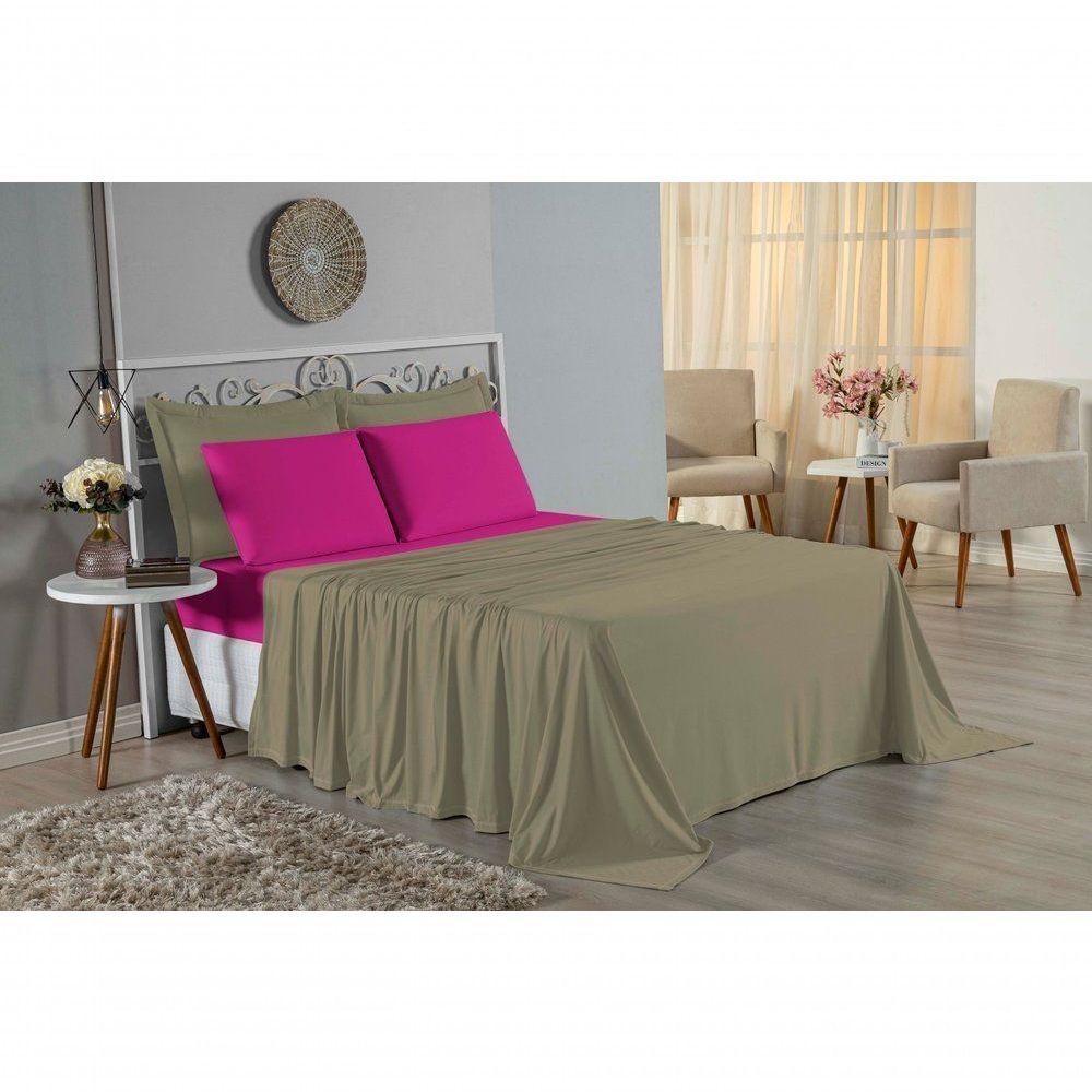 Jogo De Cama Queen Nobre 4 Peças Lençol Com Elástico De 30cm De Altura Malha 100% Algodão - Avelã / Pink