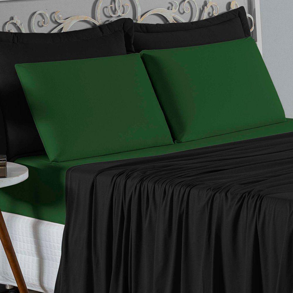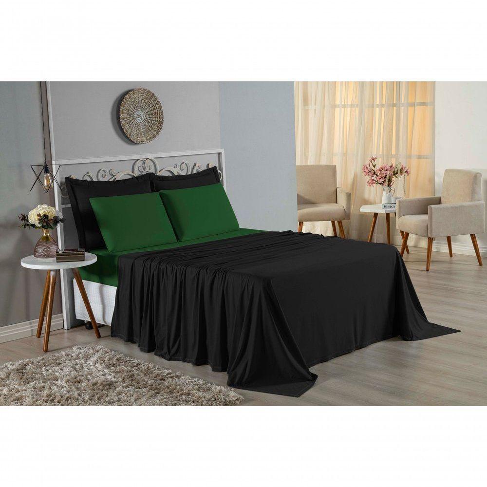 Jogo De Cama Queen Nobre 4 Peças Lençol Com Elástico De 30cm De Altura Malha 100% Algodão - Preto / Verde-bandeira
