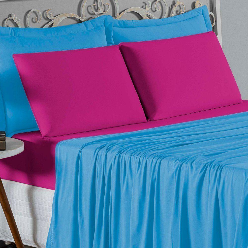 Jogo De Cama Queen Nobre 4 Peças Lençol Com Elástico De 30cm De Altura Malha 100% Algodão - Turquesa / Pink