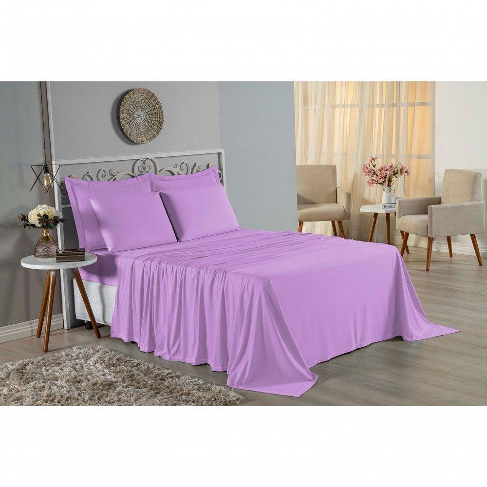 Jogo De Cama Queen Nobre 4 Peças Lençol Com Elástico De 30cm De Altura Malha 100% Algodão - Lilás