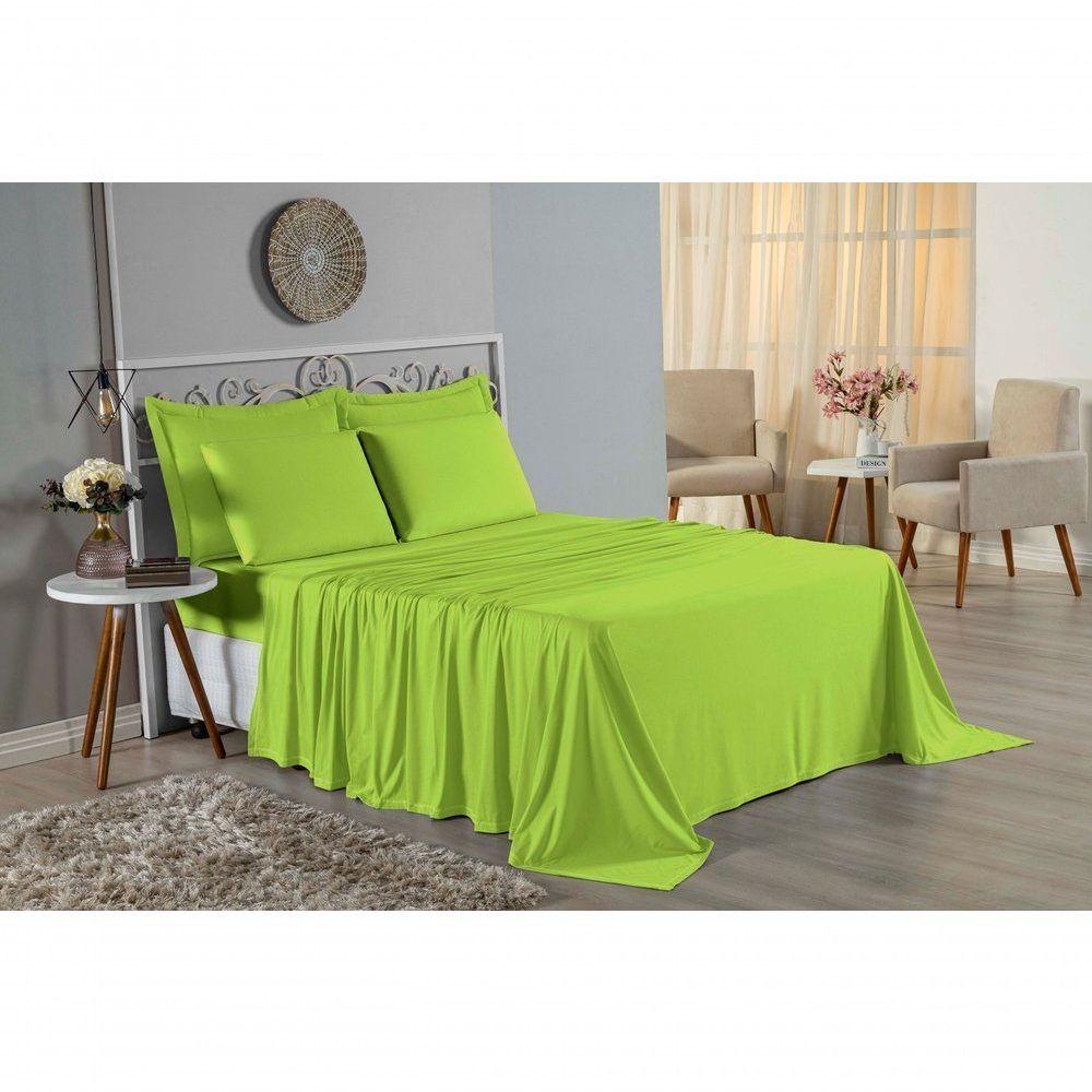 Jogo De Cama Queen Nobre 4 Peças Lençol Com Elástico De 30cm De Altura Malha 100% Algodão - Pistache